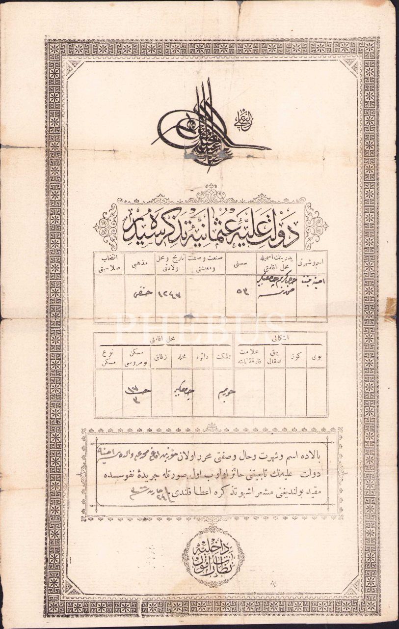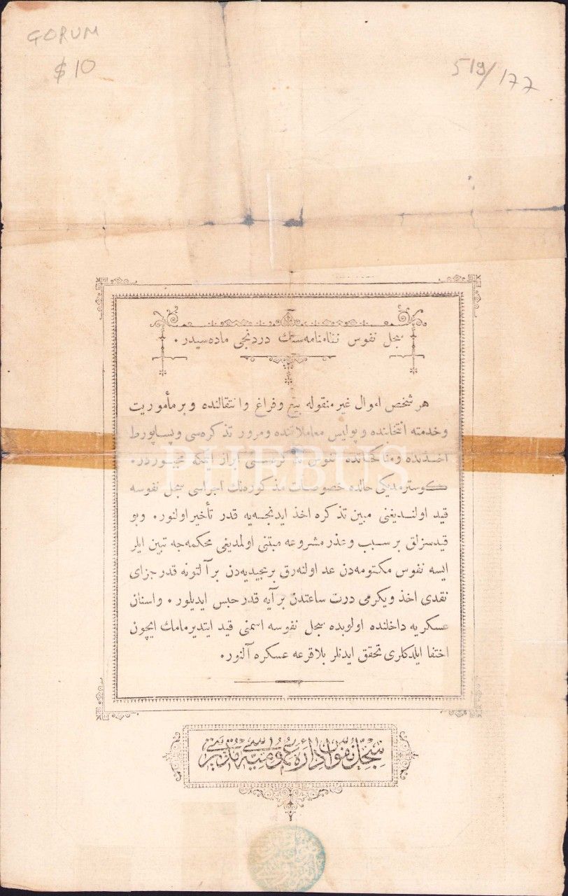 Osmanlıca Nüfus kayıt belgesi, Çorum, 1300, 18x28 cm, tamirli