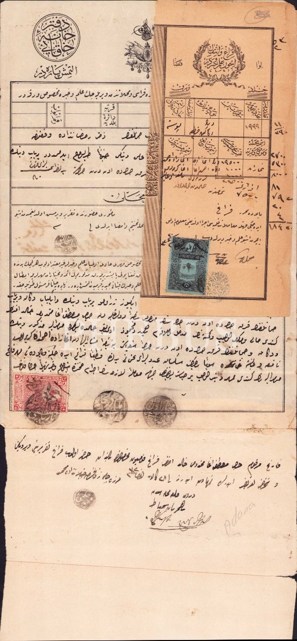 Osmanlıca Defter-i Hâkânî antetli emlak ve arazi işlemlerine ilişkin ilmühaber, Adana, 1320, 19x44 cm