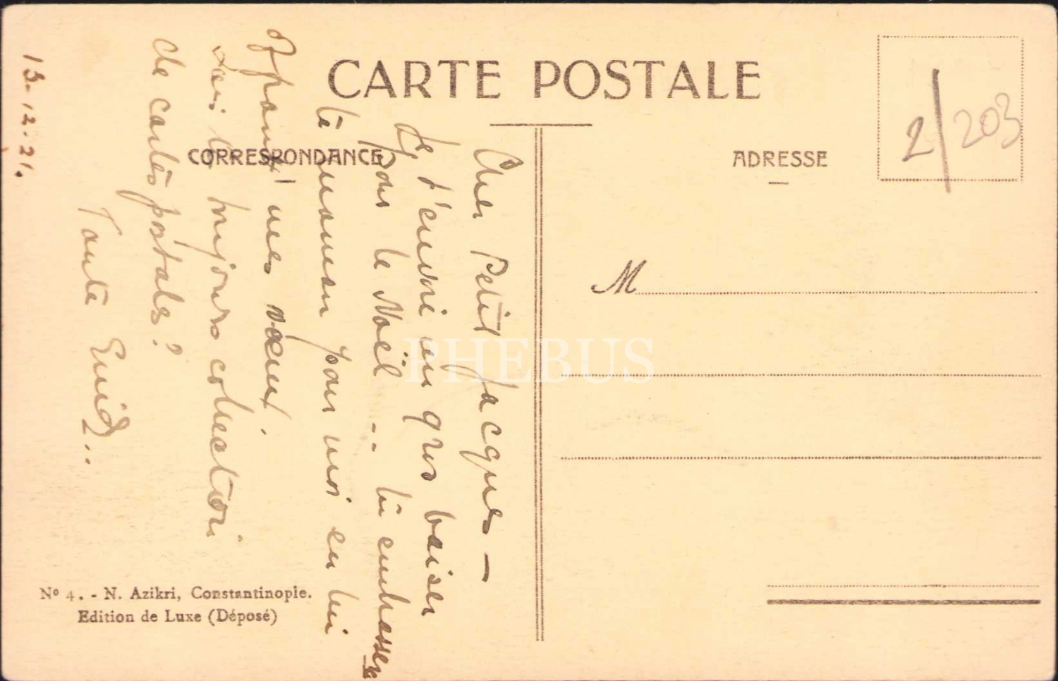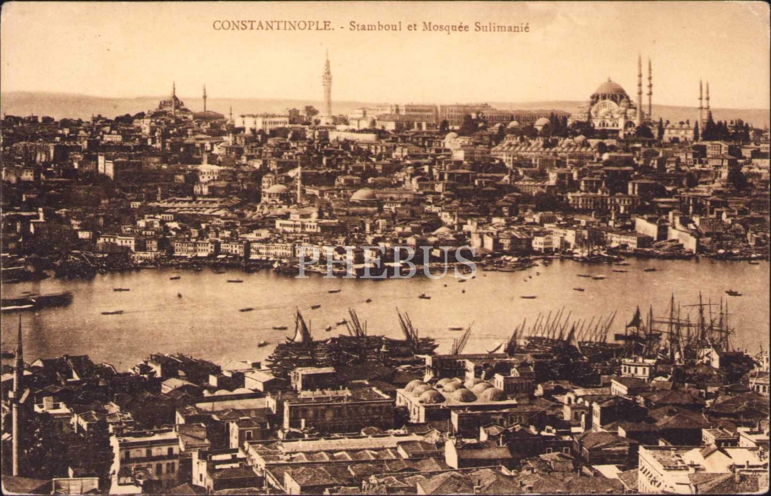 Osmanlı dönemi kartpostal: Galata'dan Süleymaniye'ye bakış, N. Azikri, Constantinople