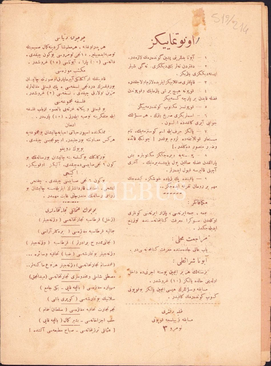 Osmanlıca Talebe Defteri, No: 3, Matbaa-i Hayriyye ve Şürekâsı, 1329, 16 syf., 19x25 cm
