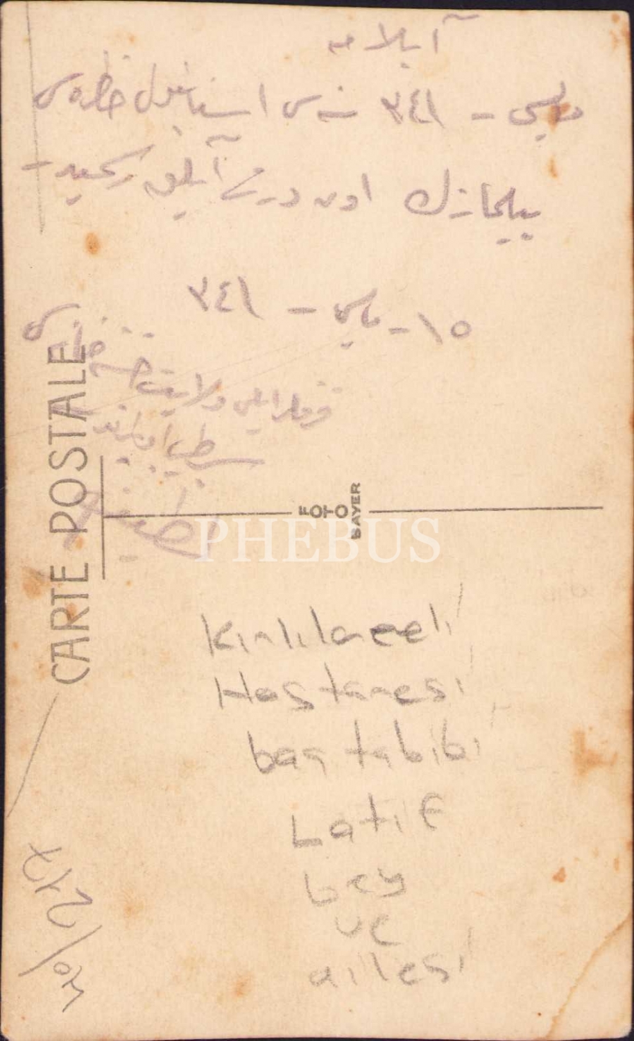 Kırklareli Hastanesi Baş Tabibi Latif Bey ve ailesi, arkası Osmanlıca yazılı