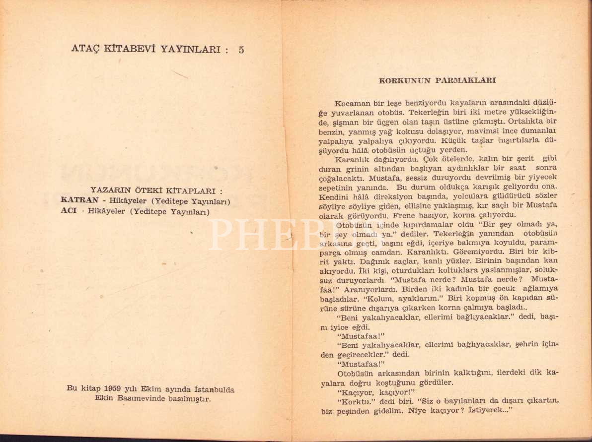 Korkunun Parmakları - Hikayeler, Muzaffer Buyrukçu, Ataç Kitabevi - 1959, 80 sayfa, 12x17 cm