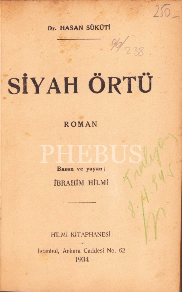 Siyah Örtü, Hasan Sükuti, Hilmi Kitaphanesi, İstanbul 1934, 124 sayfa