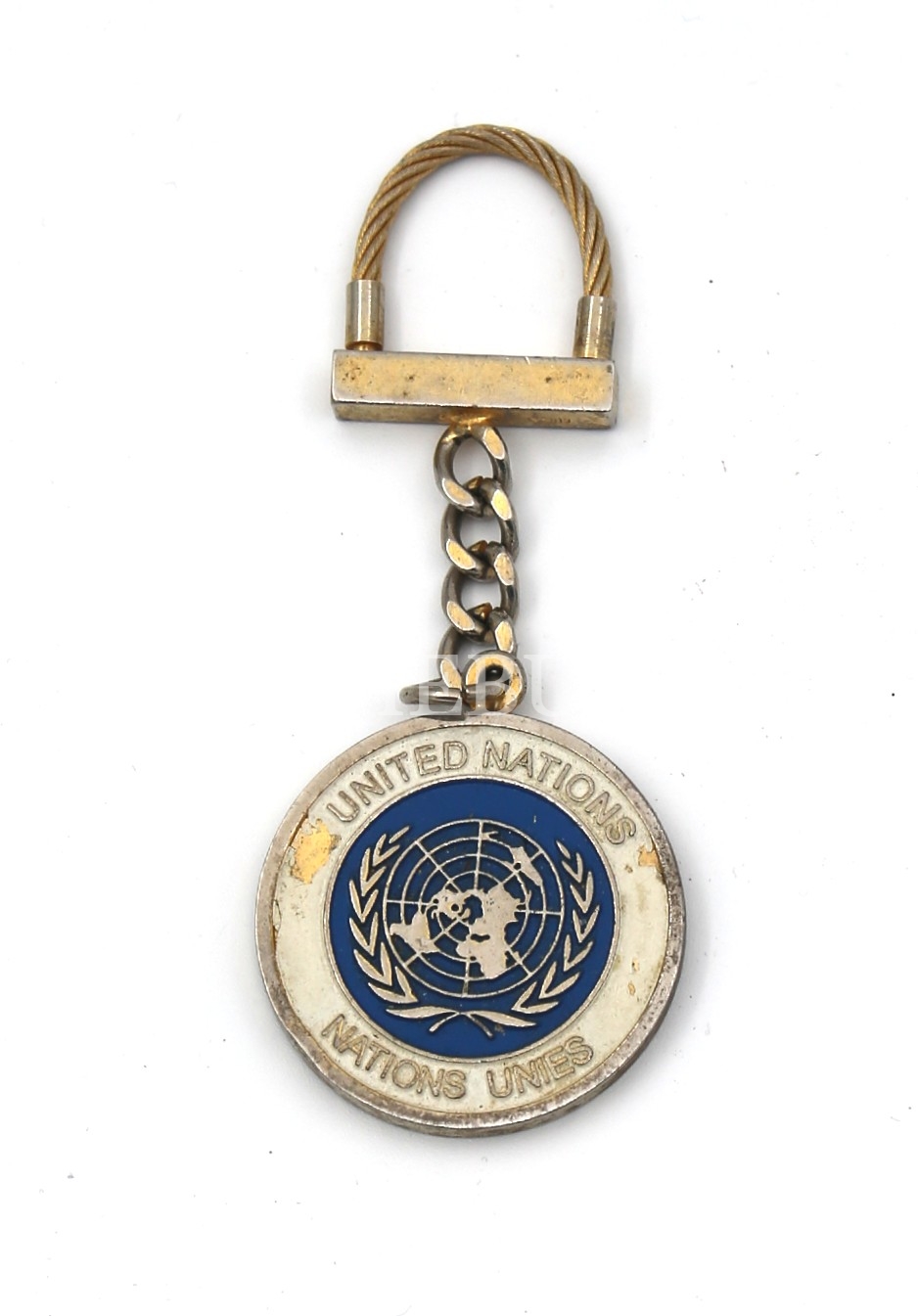 United Nations Nations Unies yazılı anahtarlık, çap 4 cm