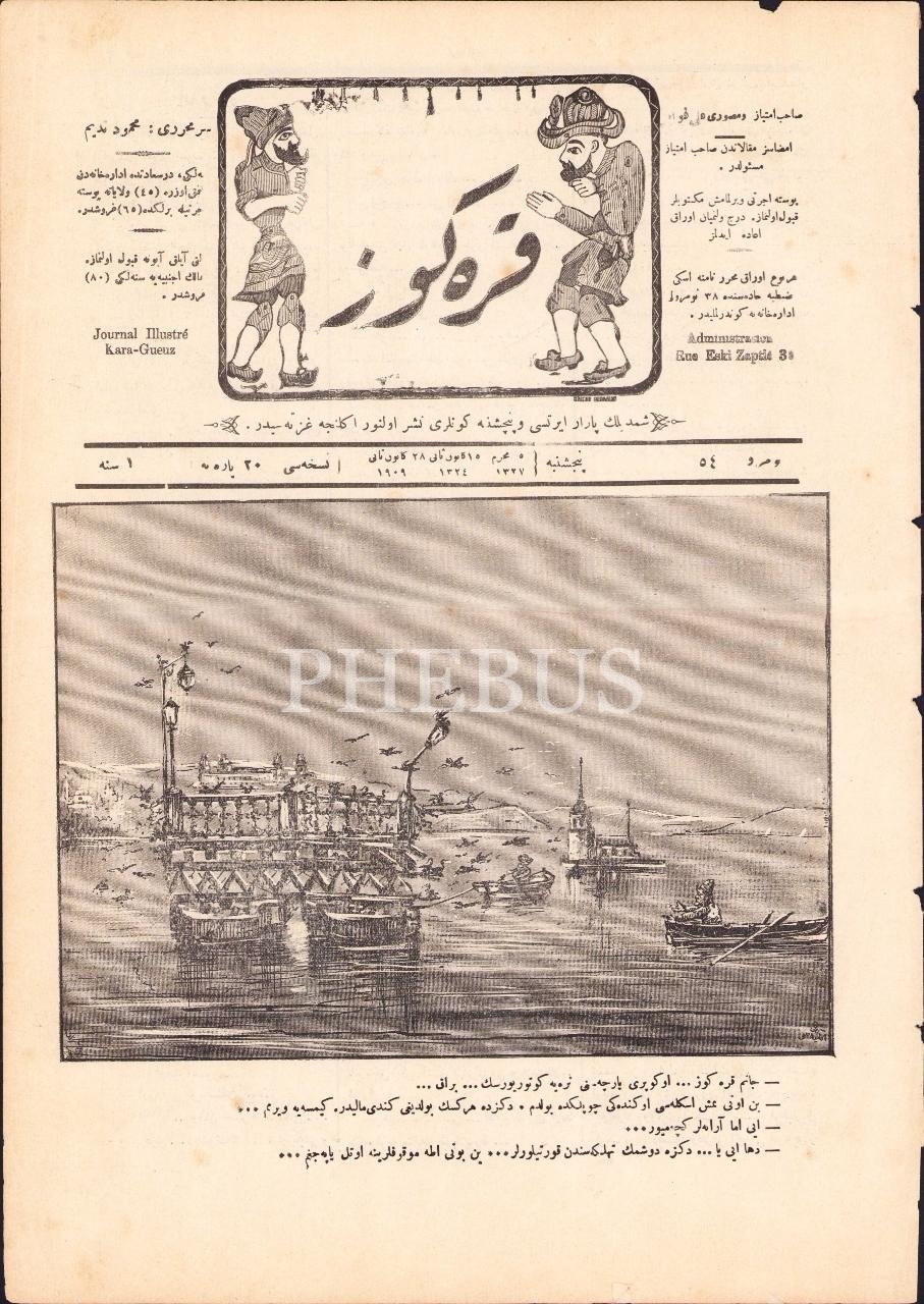 Osmanlıca Karagöz gazetesi, No:54, 1909, 4 syf., 27x38 cm