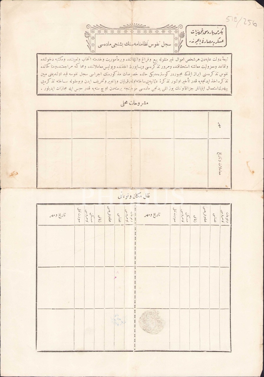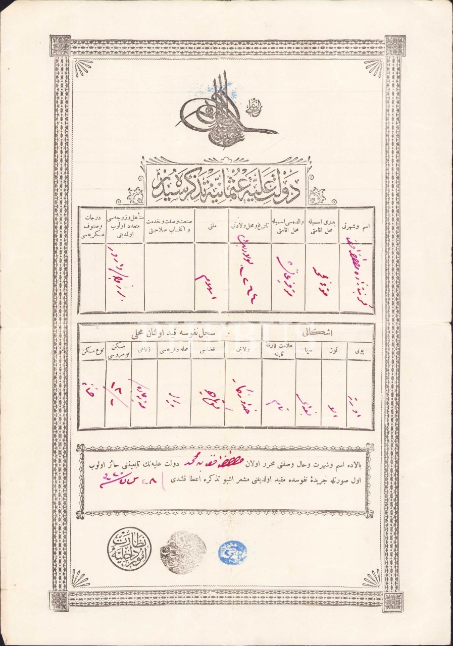 Osmanlıca Nüfus kayıt belgesi, Hüdâvendigâr [Bursa], 1320, 24x34 cm