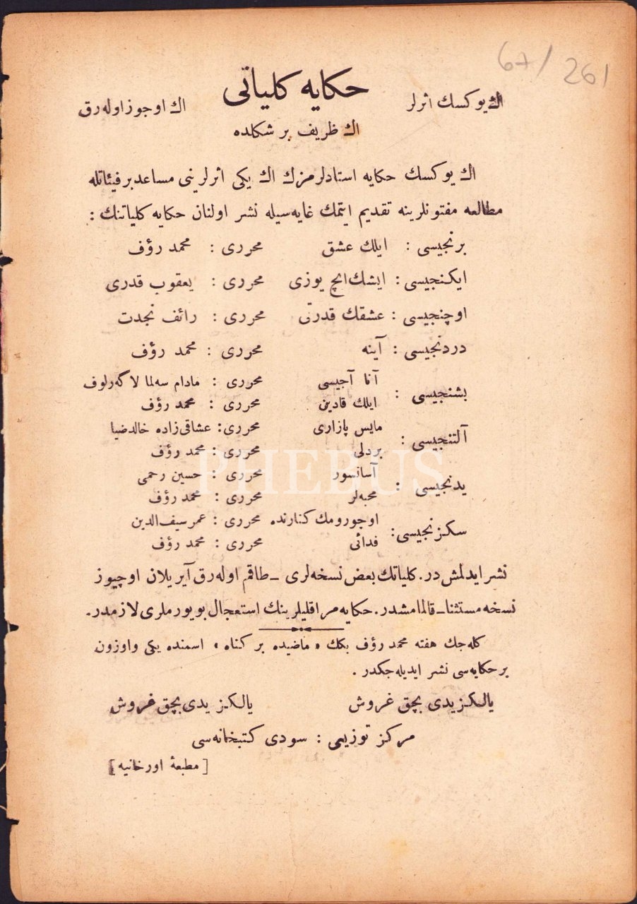 Osmanlıca Hikâye Külliyâtı: Uçurumun Kenarında, Ömer Seyfeddin; Fedâi, Mehmed Rauf, Orhaniye Matbaası, 14 syf., 17x23 cm, ciltten çıkma, kenarları haliyle