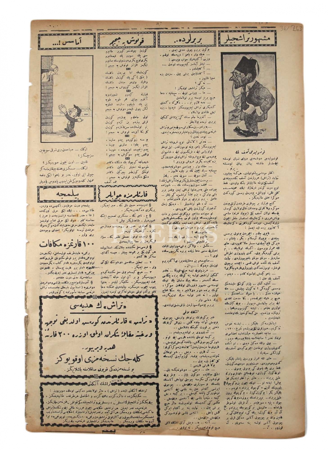 Osmanlıca Traş gazetesi, 1927, 4 syf., 30x45 cm
