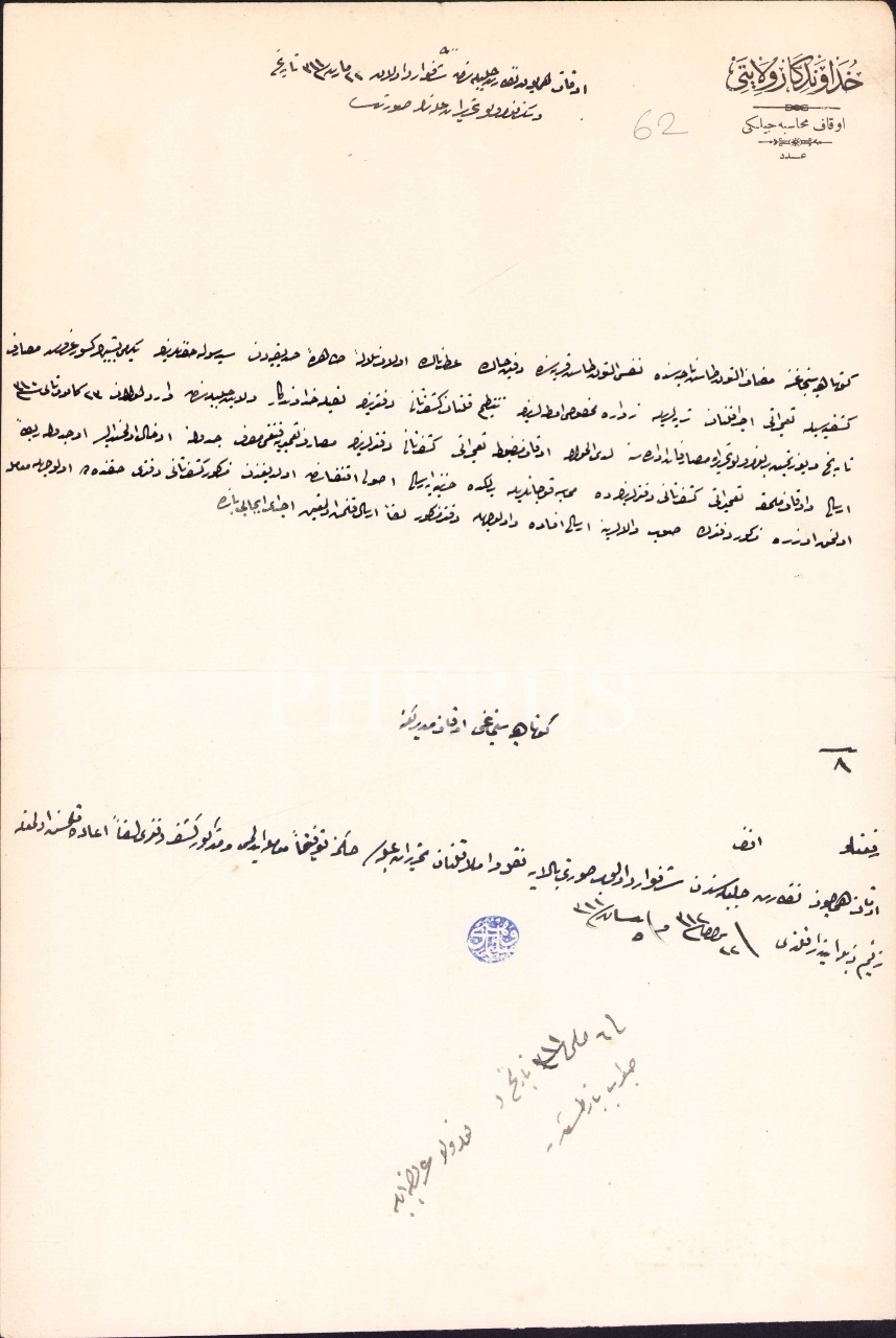 Osmanlıca Hüdâvendigâr Eyâleti [Bursa] Evkâf Muhasebeciliği antetli yazışma evrağı, 1311, 23x33 cm