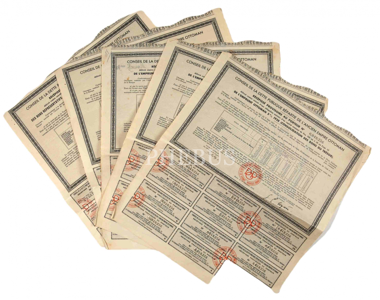 Fransızca Conseil De La Dette Publique Repartie De L'Ancien Empire Ottoman şirketine ait 5 adet hisse senedi