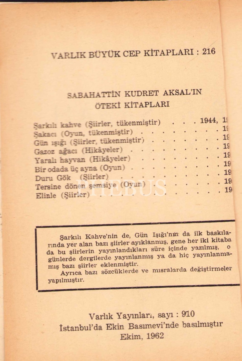Bir Sabah Uyanmak (Şiirler), Sabahattin Kudret Aksal, Varlık Yayınları, 1962, 194 sayfa