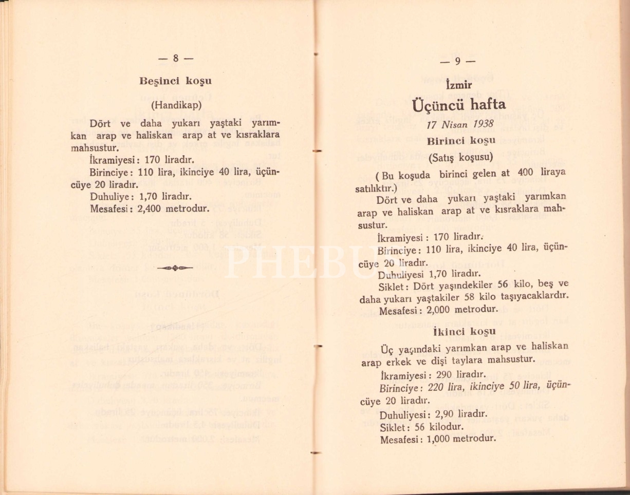 Reisicumhur Kamal Atatürkün Himayelerinde Başvekil Celal Bayarın Riyasetlerinde Yarış ve Islah Encumeni 1938 Yarış Programıdır - Ankara Başvekalet Matbaası, 232 sayfa, 13x19 cm