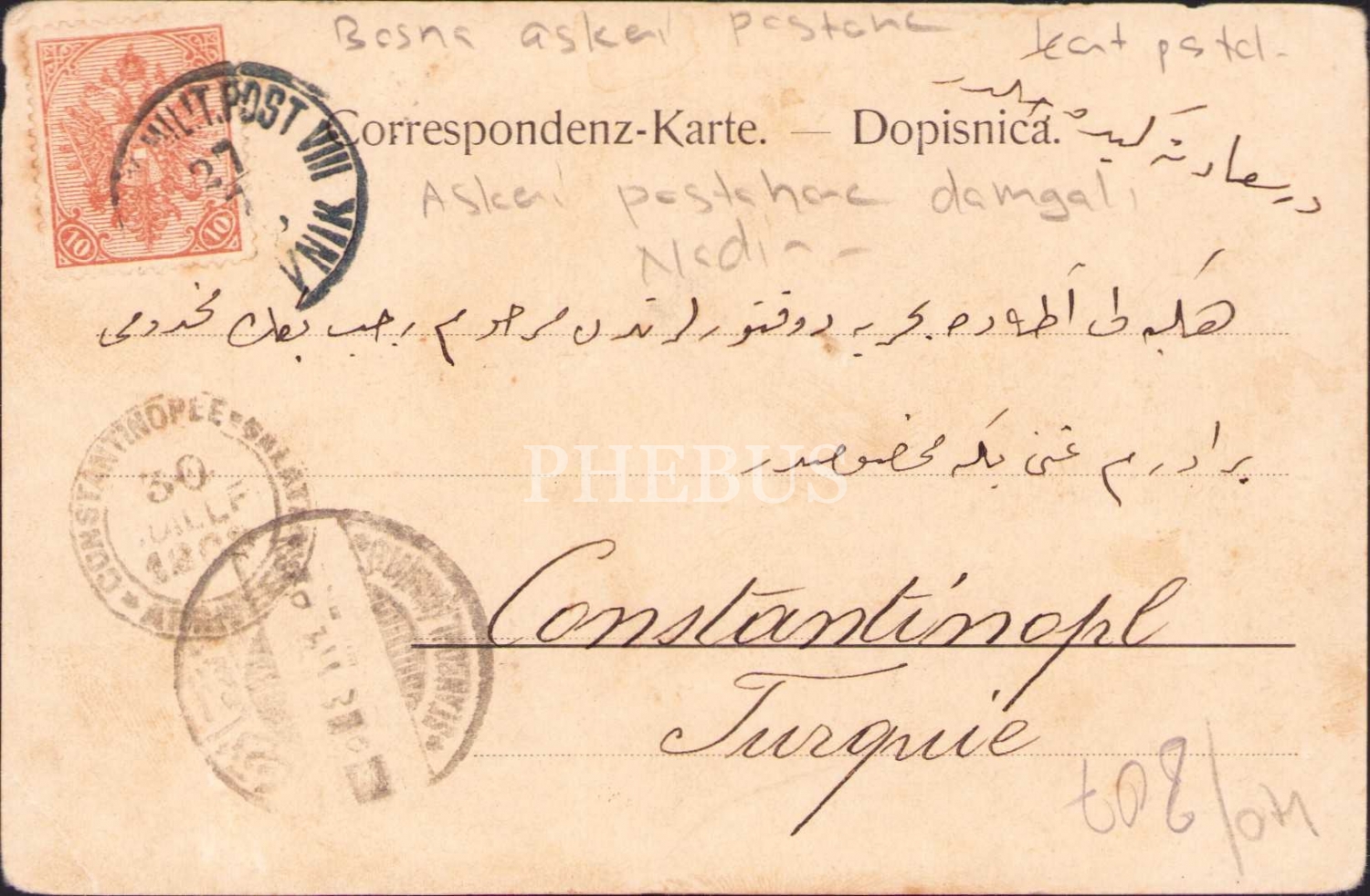 Bosna Askeri Postane kartpostal, Askeri Postane damgalı (Nadir)