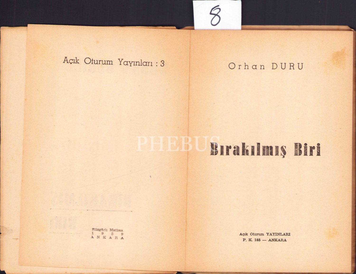 Orhan Duru'nın İlk Öykü Kitabı: Bırakılmış Biri, İlk Baskı, Orhan Duru'dan İmzalı ve İthaflı, Açık Oturum Yayınları, 1959, 79 sayfa