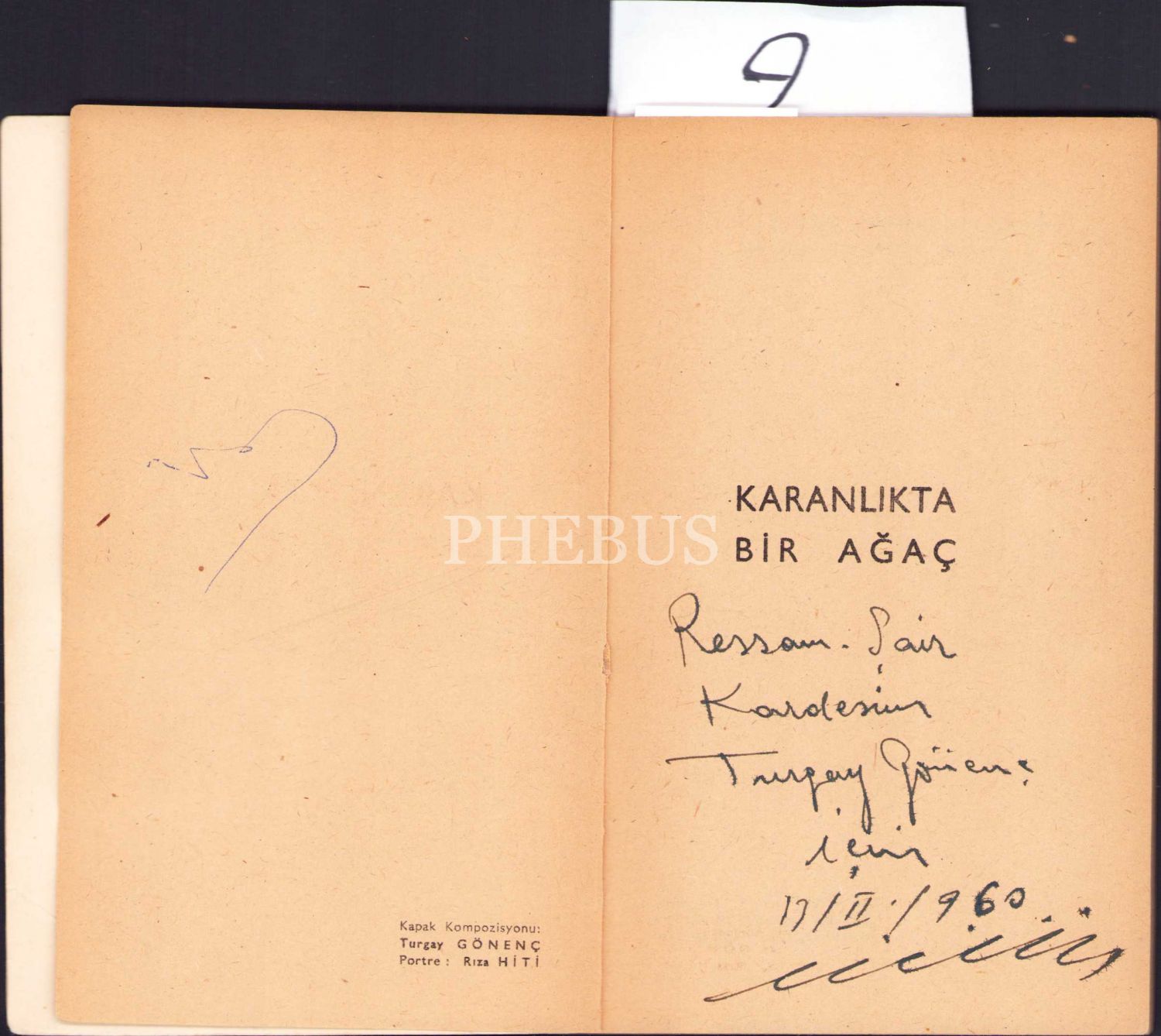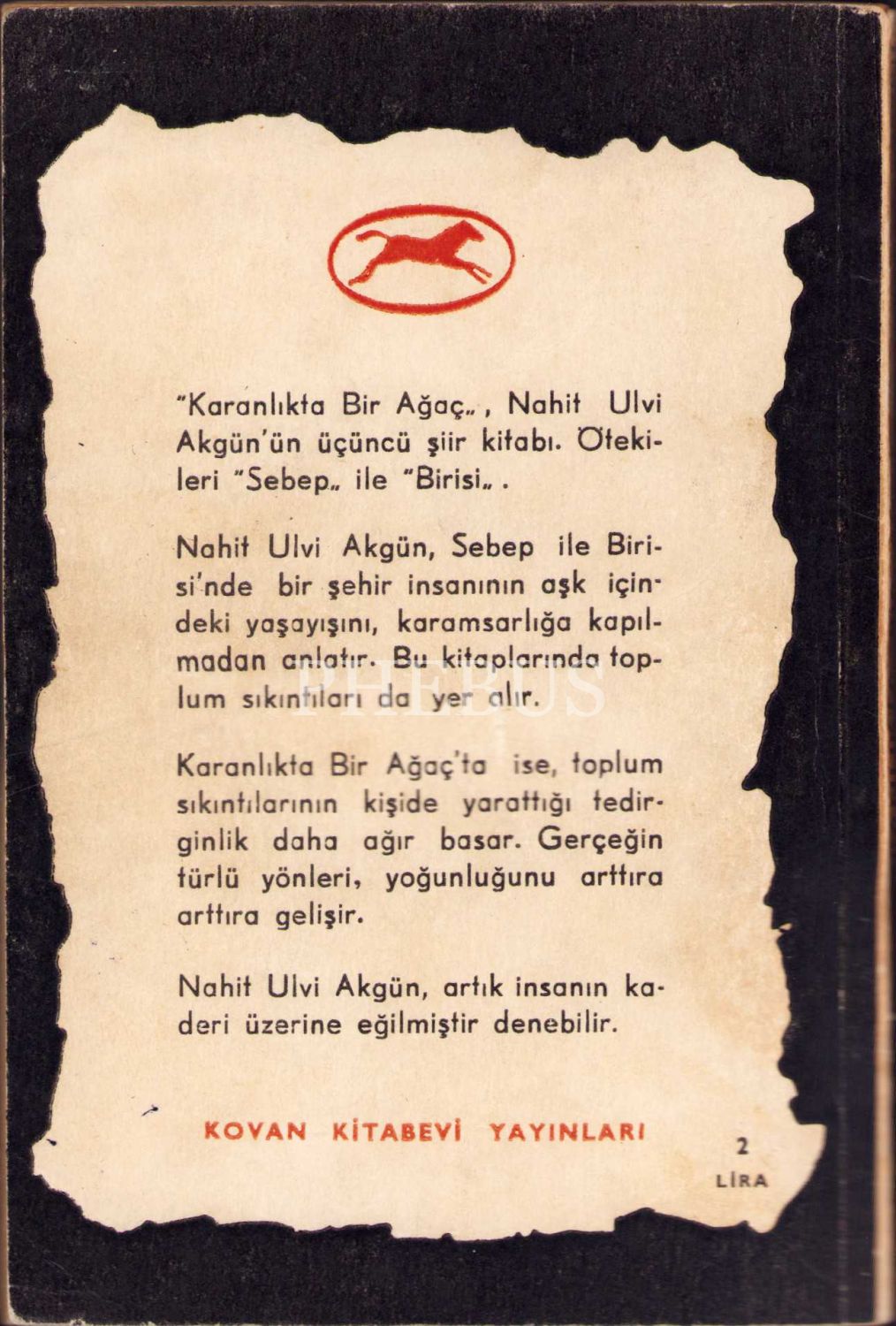 Şair ve Öğretmen Nahit Ulvi Akgün'den İmzalı ve İthaflı "Karanlıkta Bir Ağaç" -Şiirler-, Kovan Kitabevi, 1960, 79 sayfa