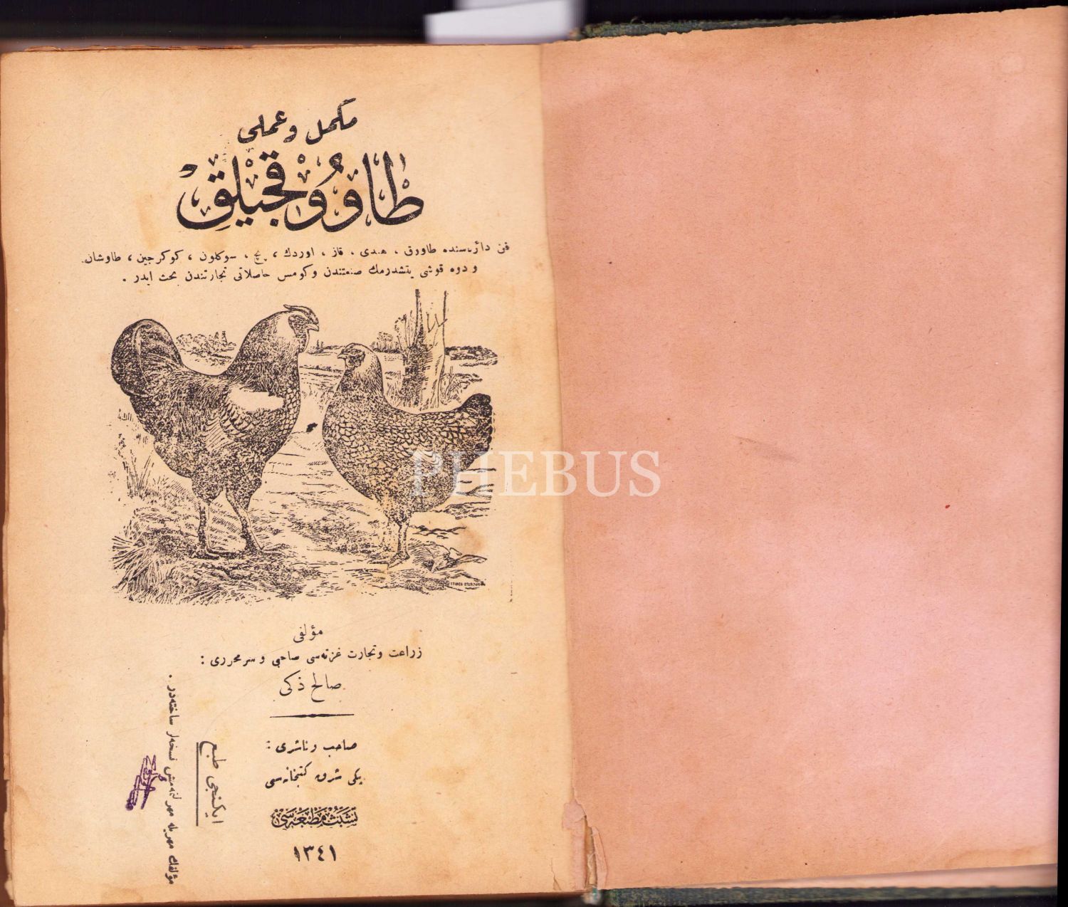 Osmanlıca "Mükemmel ve Ameli [Uygulamalı] Tavukçuluk, Müellifi: Salih Zeki, İkinci Baskı, 1341, 471 sayfa