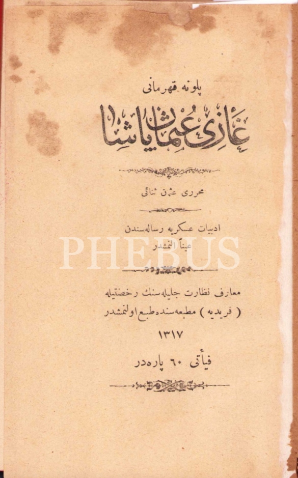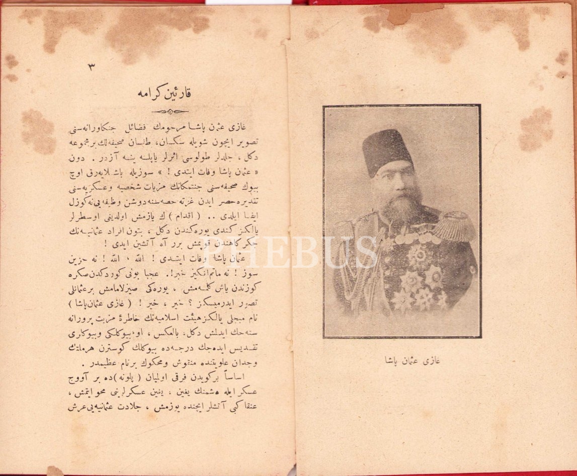 Osmanlı Devlet Armalı Ravza-i Terakki Mektebi Mükafat Cildinde Osmanlıca Plevne Kahramanı Gazi Osman Paşa, Muharriri: Osman Senai [Erdemgil], 1317 tarihli, Feridiye Matbaası, 80 sayfa, 10x17 cm