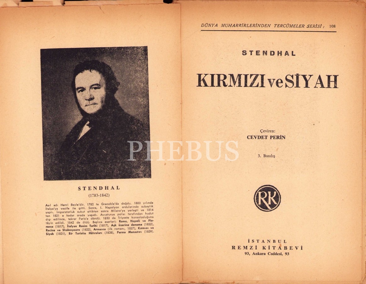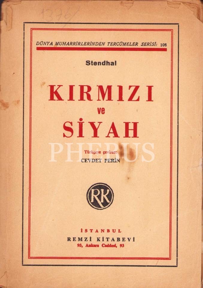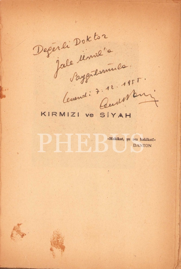 Siyatsetçi Cevdet Perin çevirisiyle "Kırmızı ve Siyah" Stendhal, Cevdet Perin imzalı ve ithaflı, 1955, Remzi Kitabevi, 603 sayfa