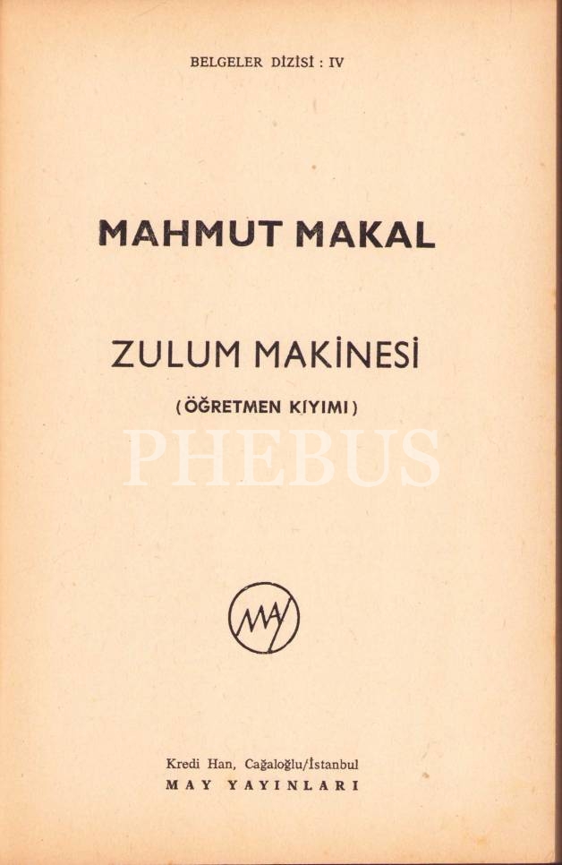 Mahmut Makal'dan İmzalı ve İthaflı "Zulüm Makinesi Öğretmen Kıyımı", May Yayınları, 1969, 416 sayfa