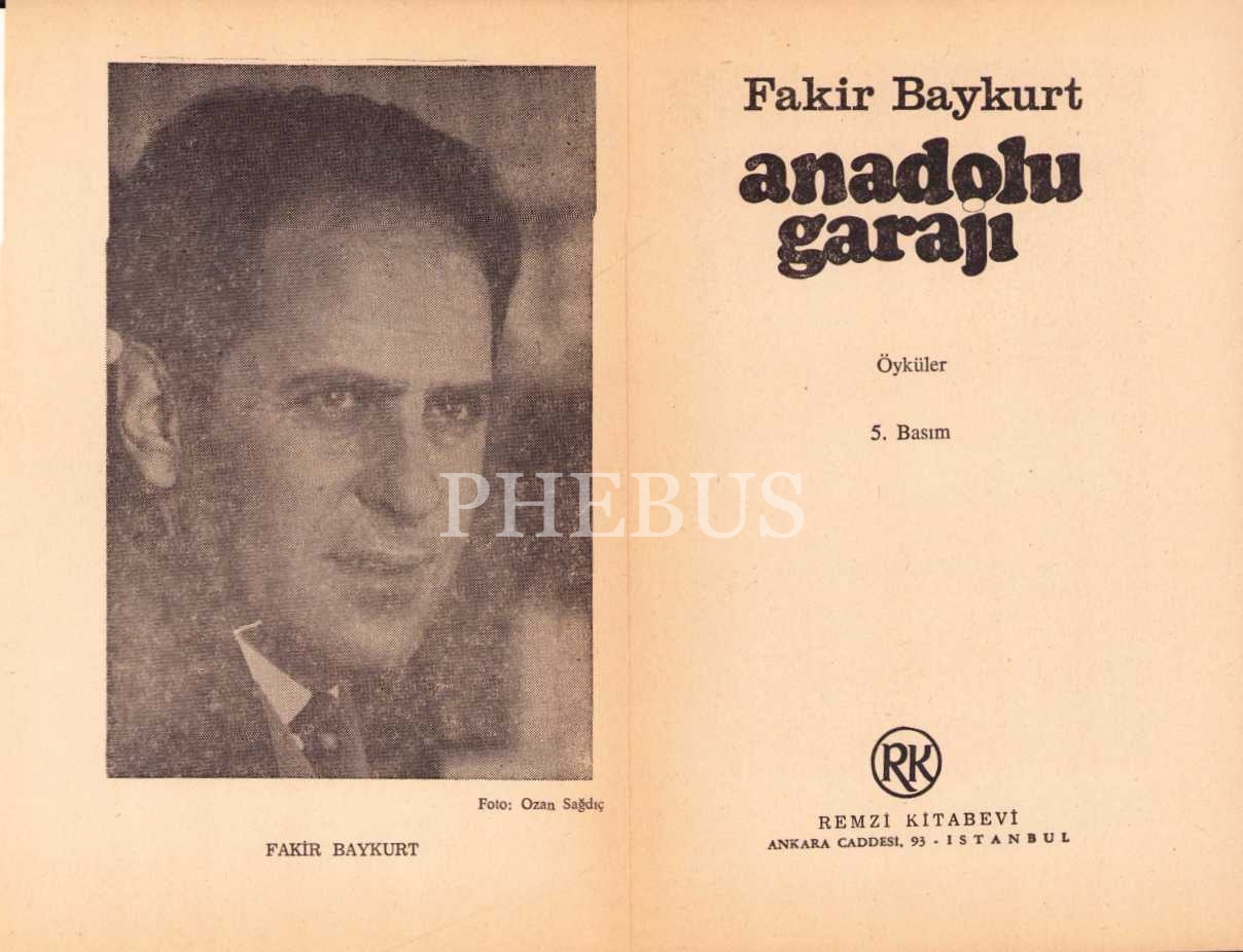 Toplumcu Gerçekçi Yazar Fakir Baykurt'tan imzalı ve İthaflı "Anadolu Garajı", Remzi Kitabevi, 1984, 222 sayfa