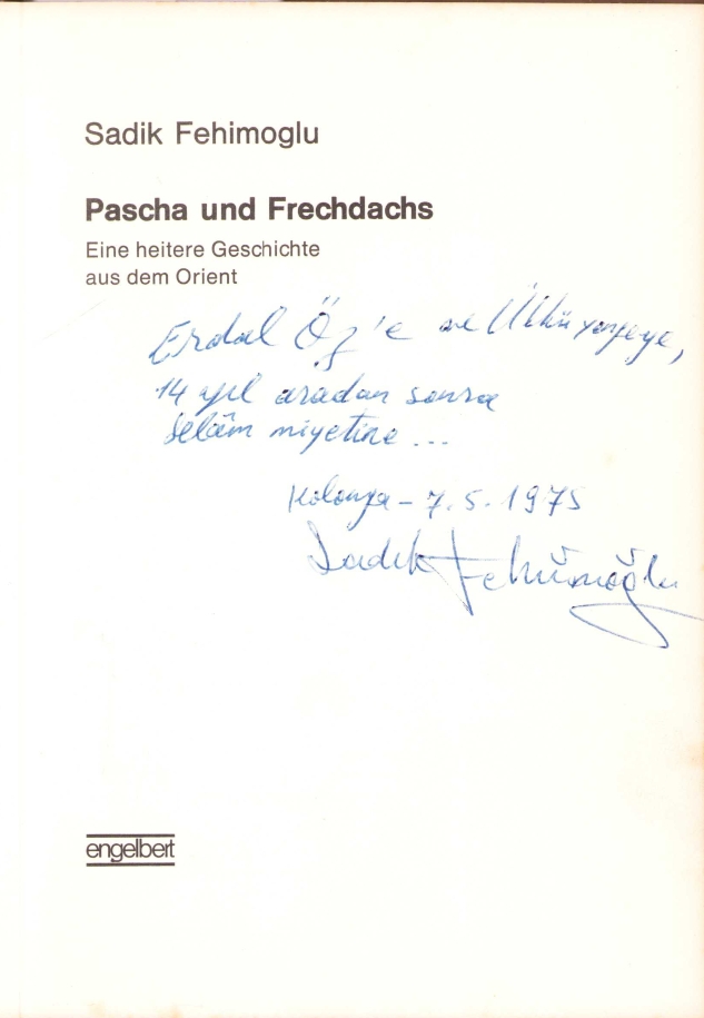 Pascha und Frechdachs [Paşa ve Arsız Porsuk], Sadık Fehimoğlu'ndan Yazar Erdal Öz'e İmzalı ve İthaflı, 1973 tarihli, 91 sayfa, 14x20 cm