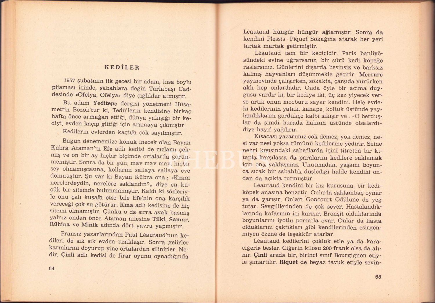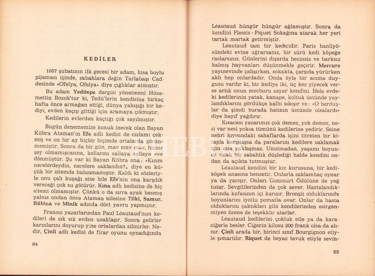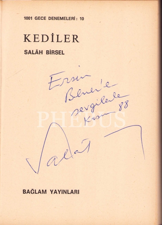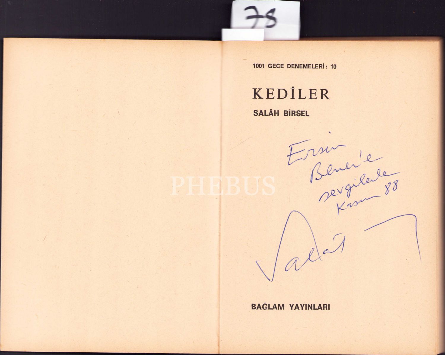 Salah Birsel'den İmzalı ve İthaflı "Kediler", Bağlam Yayınları, İlk Baskı, 1988, 204 sayfa