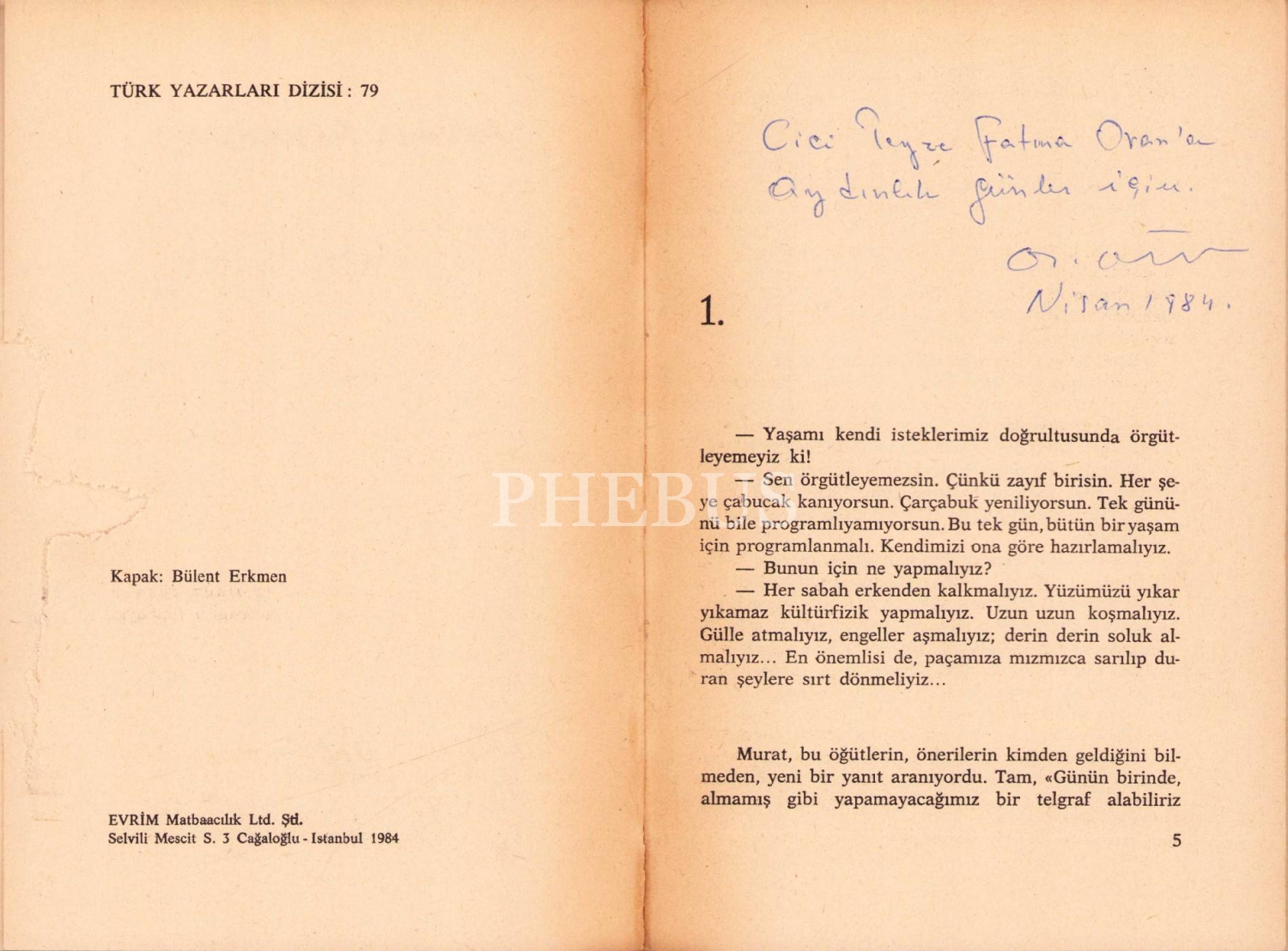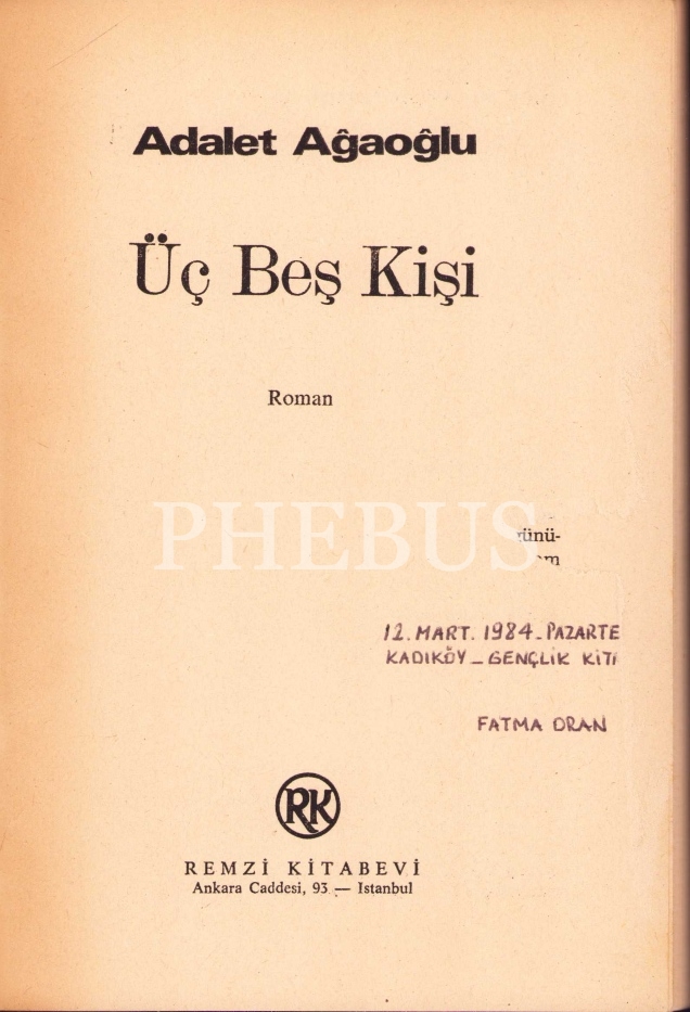 Adalet Ağaoğlu'ndan İmzalı ve ithaflı "Üç Beş Kişi", İlk Baskı, Remzi Kitabevi, 1984, 373 sayfa