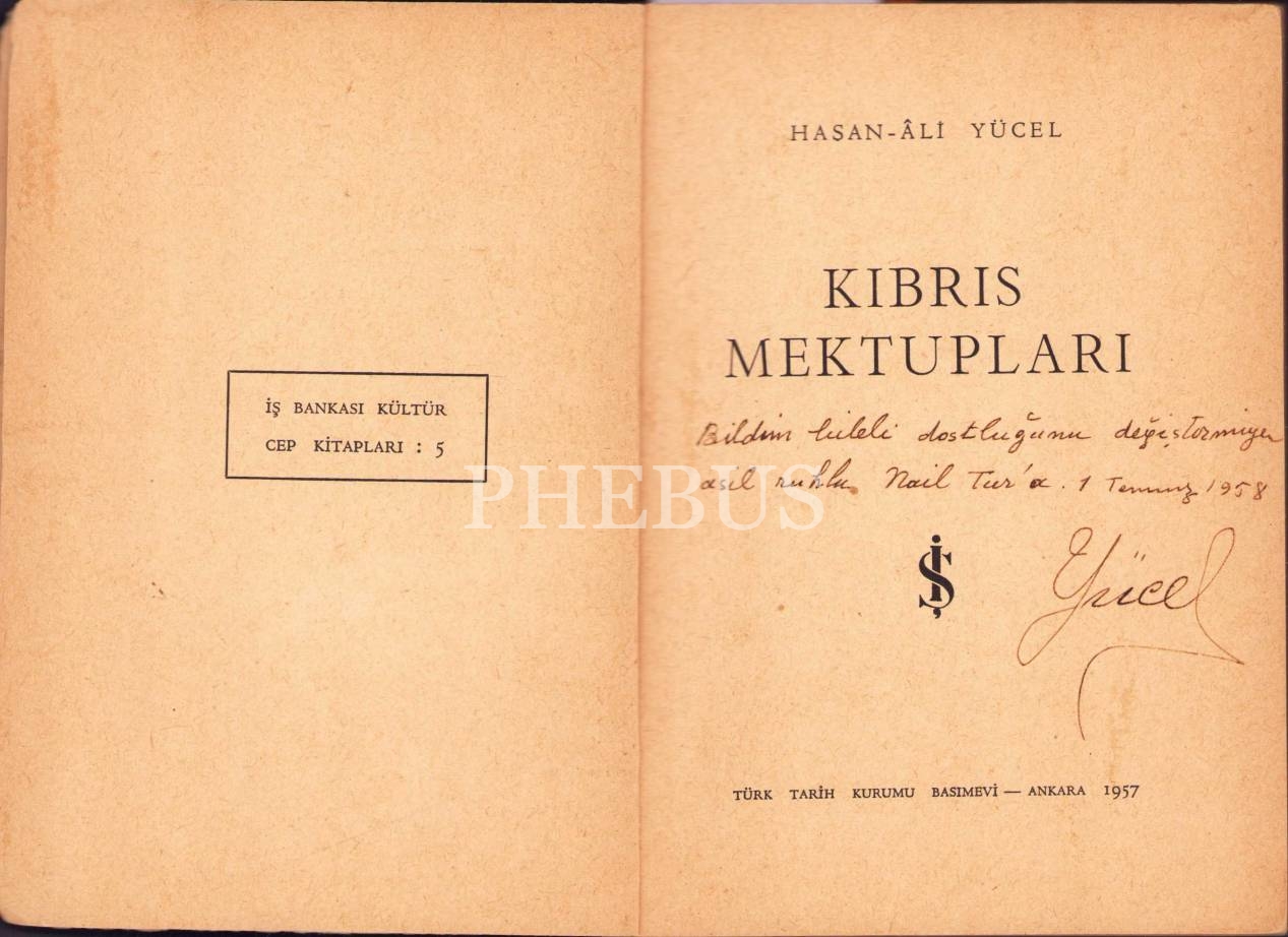 Hasan Ali Yücel'den İmzalı ve İthaflı "Kıbrıs Mektupları", 1957, Türkiye İş Bankası Yayınları, 127 sayfa