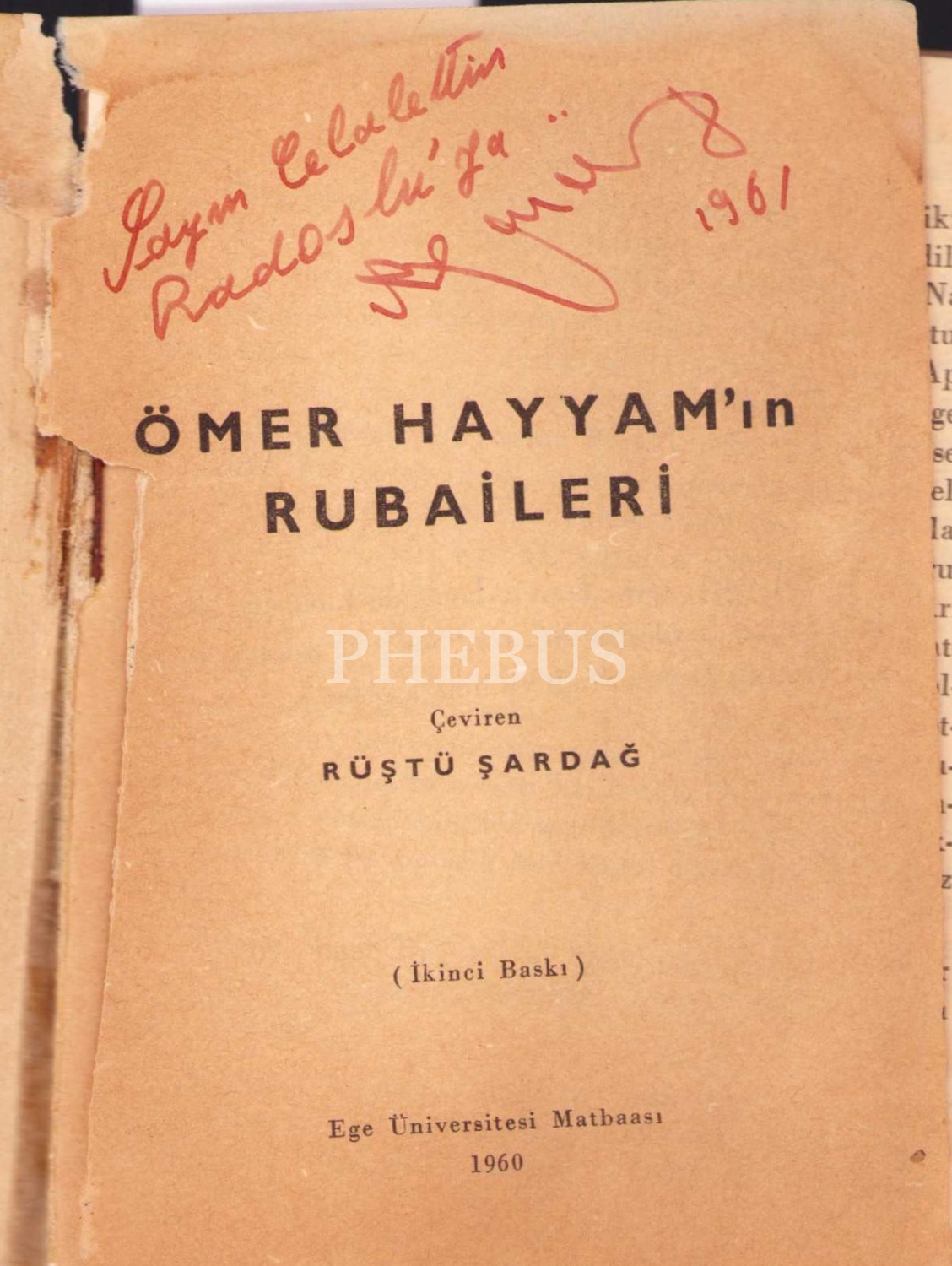 Çeviren Rüştü Şardağ'dan Celaleddin Rodoslu'ya İthaflı ve İmzalı "Ömer Hayyam Rubaileri", 1960, Ege Üniversitesi Matbaası, 89 sayfa, 10x14 cm