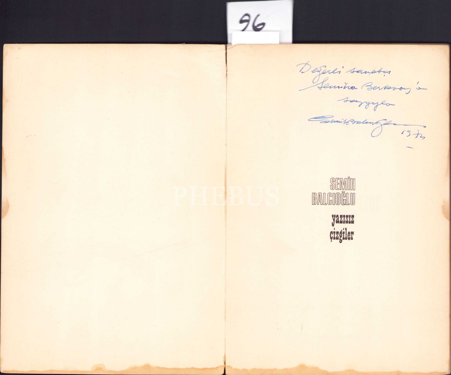 Semih Balcıoğlu'ndan Sanatçı Semiha Berksoy'a ithaflı ve imzalı "Yazısız Çizgiler", Cem Yayınevi, 1971, 108 sayfa