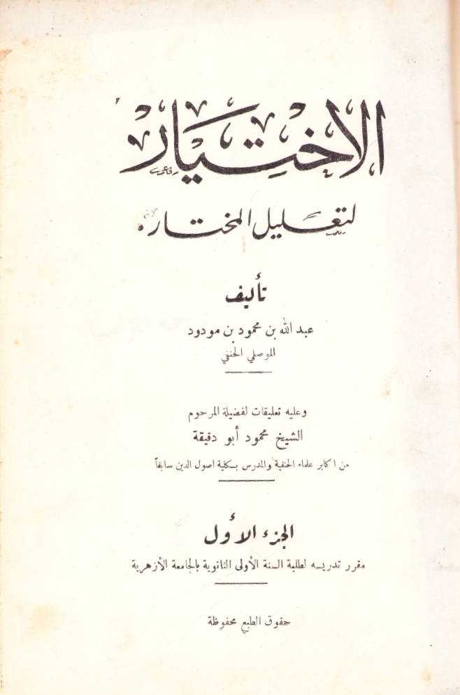 Hanefi fakihi Mevsıli'nin mezhep fıkhının temel metinlerinden biri sayılan el-Muhtâr adlı kitabına, yine kendisi tarafından yazılan şerh.