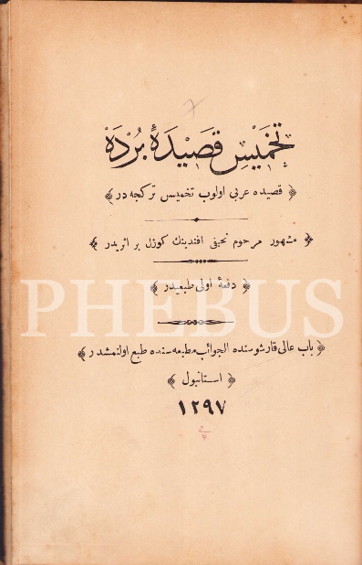 Osmanlıca Tahmîs-i Kasîde-i Bürde [İlk baskı], Nahîfî Efendi, el-Cevâib Matbaası, İstanbul 1297, 60 syf., 14x21 cm