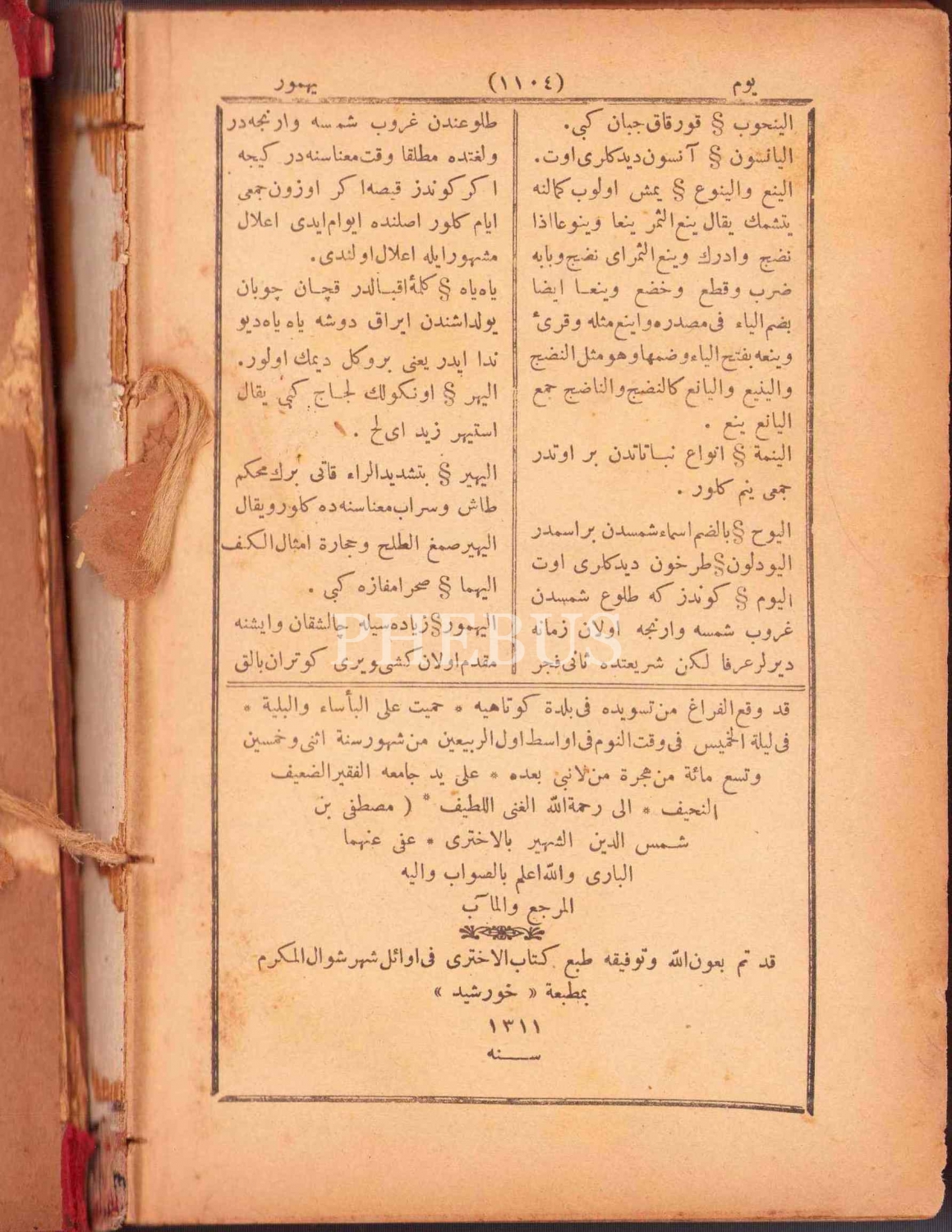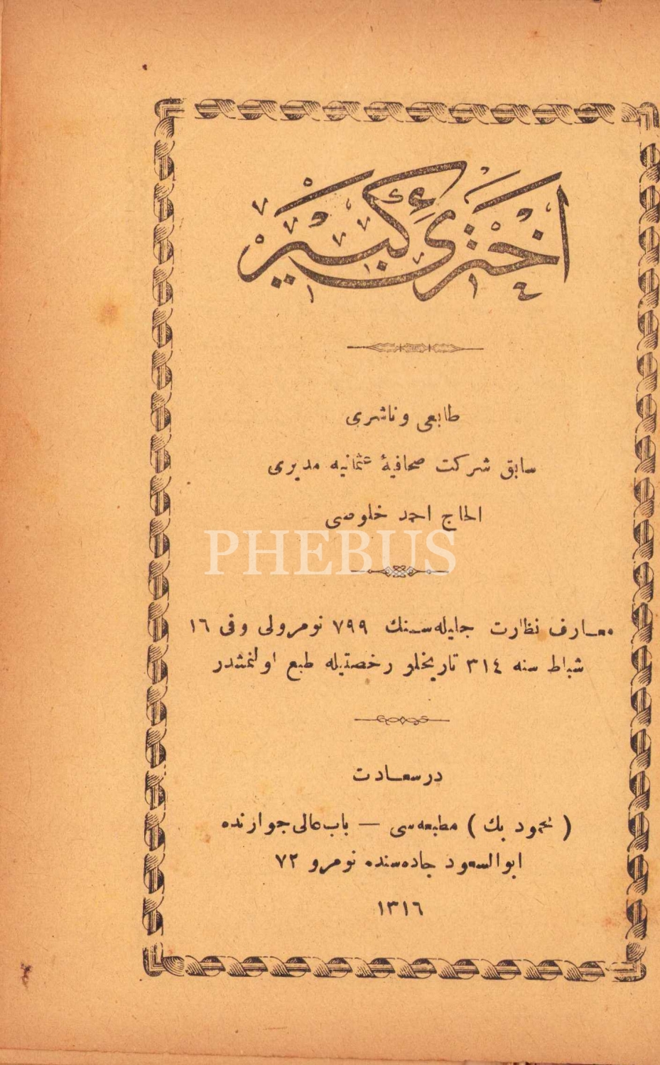 Osmanlıca Ahterî-i Kebîr, Mahmud Bey Matbaası, Dersaadet [İstanbul] 1316-1318, 1104 syf., 14x20 cm, sırtı haliyle