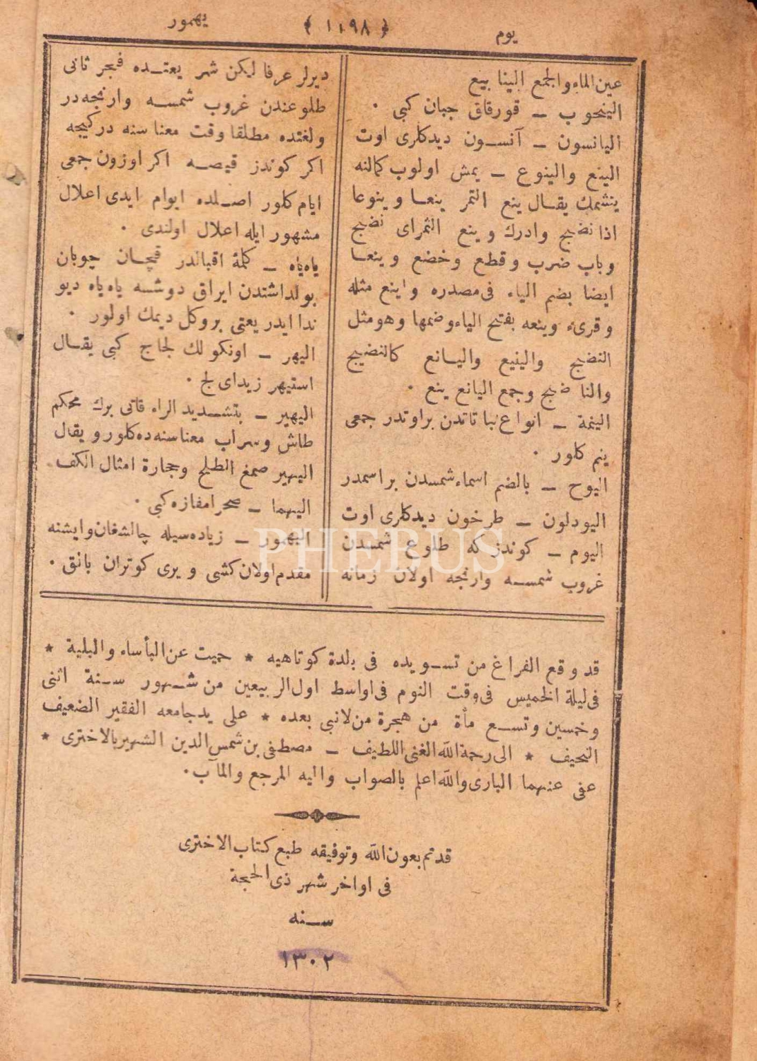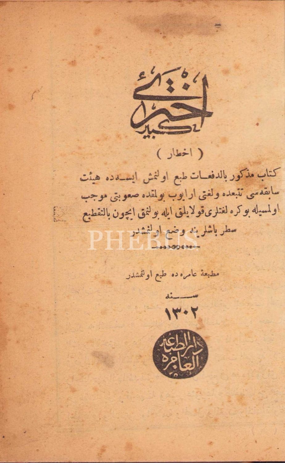 Osmanlıca Ahterî-i Kebîr, Âmire Matbaası, 1302, 1198 syf., 13x18 cm