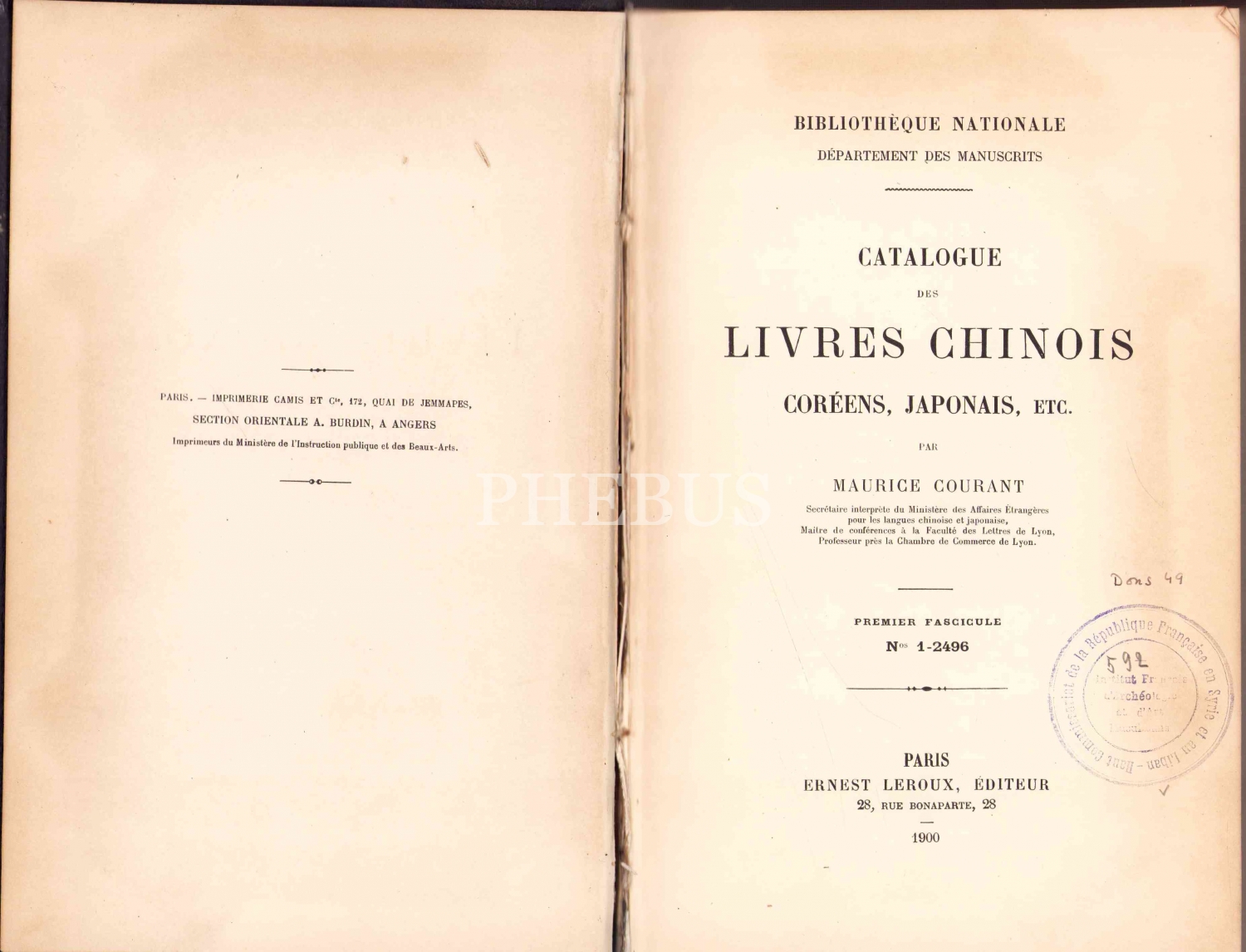 Fransızca Catalogue des Livres Chinois, Coreens, Japonais etc., Maurice Courant, Paris/Fransa 1900, 499 syf., 16x25 cm