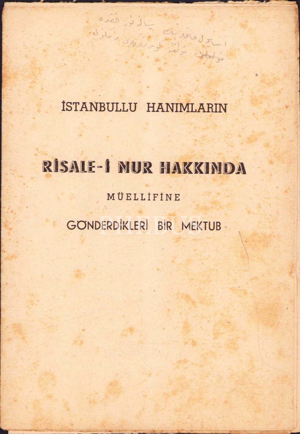 İstanbullu Hanımların Risale-i Nur Hakkında Müellifine Gönderdikleri Bir Mektub, Çeltüt Matbaası, İstanbul, 15 syf., 14x21 cm