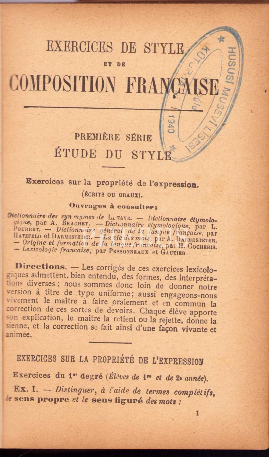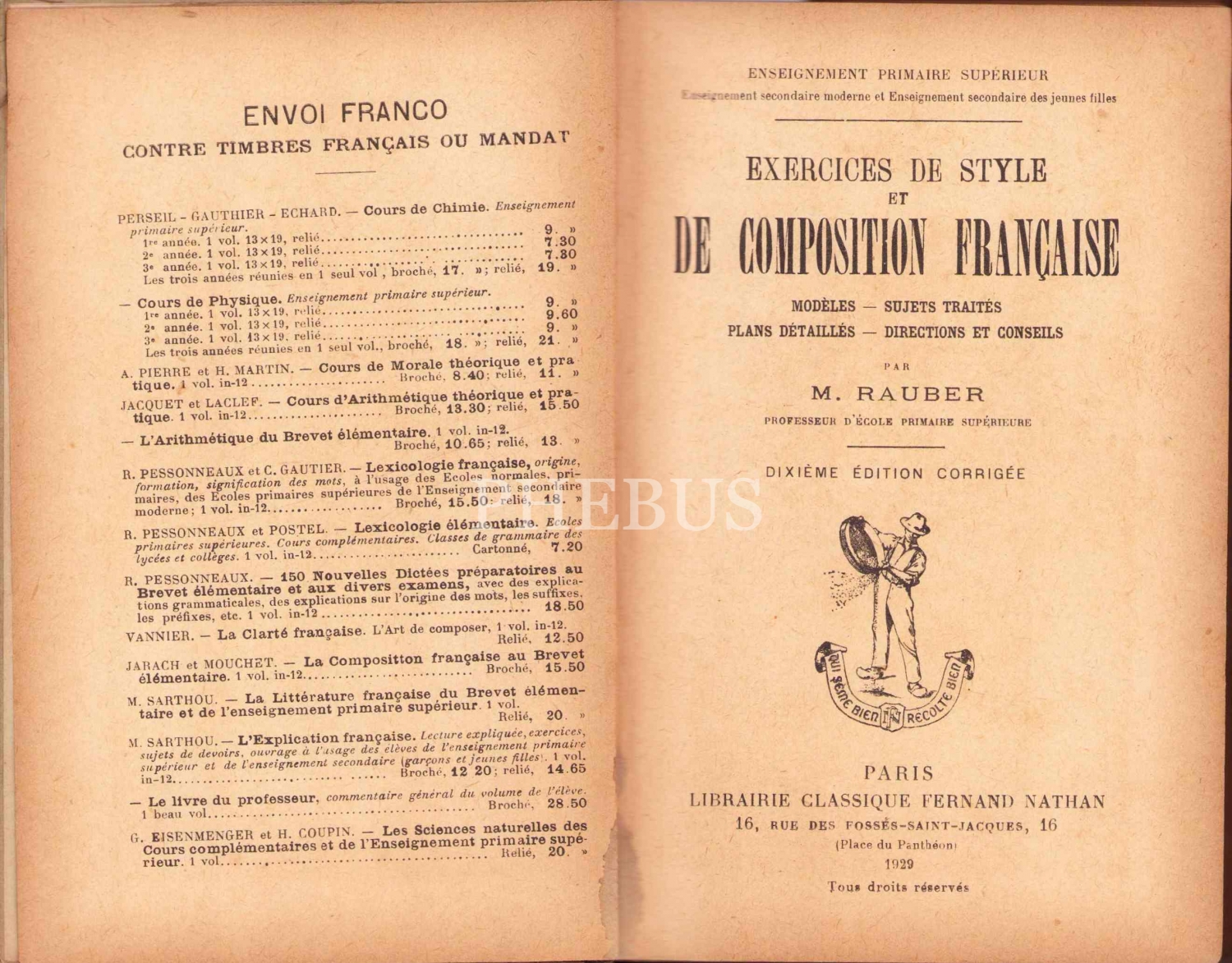 Fransızca Exercices De Style et De Composition Française, M. Rauber, Paris/Fransa 1929, 448 syf., 11x18 cm