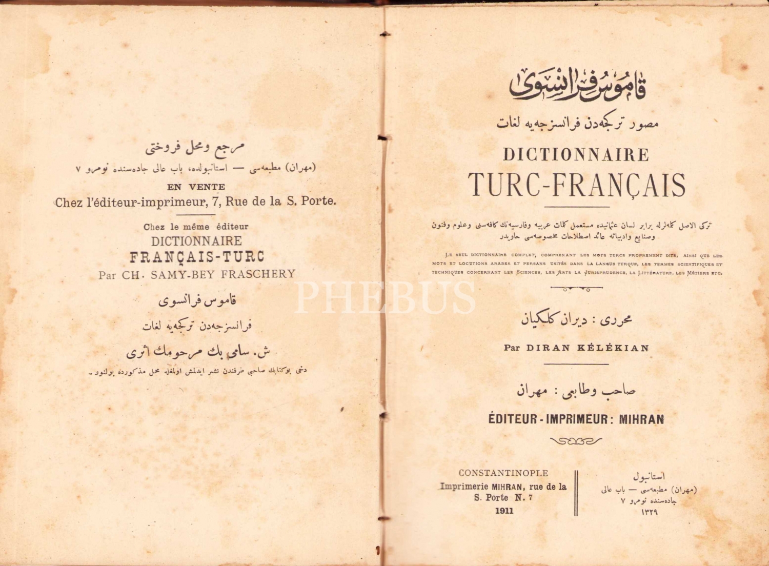 Osmanlıca-Fransızca Kâmûs-ı Fransevî [Resimli Türkçe-Fransızca Sözlük], Diran Kelekyan, Mihran Matbaası, İstanbul 1911, 1373 syf., 14x20 cm, cilt yorgun