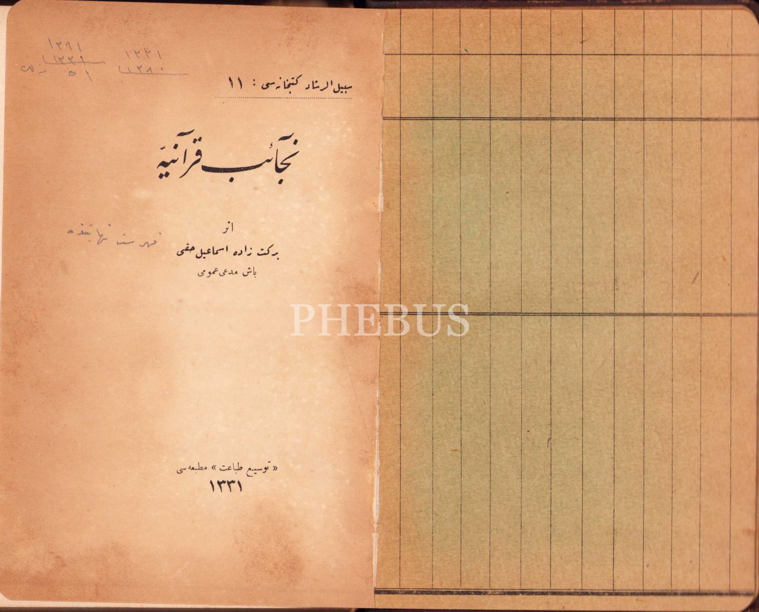 Osmanlıca Necâib-i Kur'âniyye, Bereketzâde İsmail Hakkı, Tevsî-i Tıbâat Matbaası, 1331, 434 syf., 14x20 cm