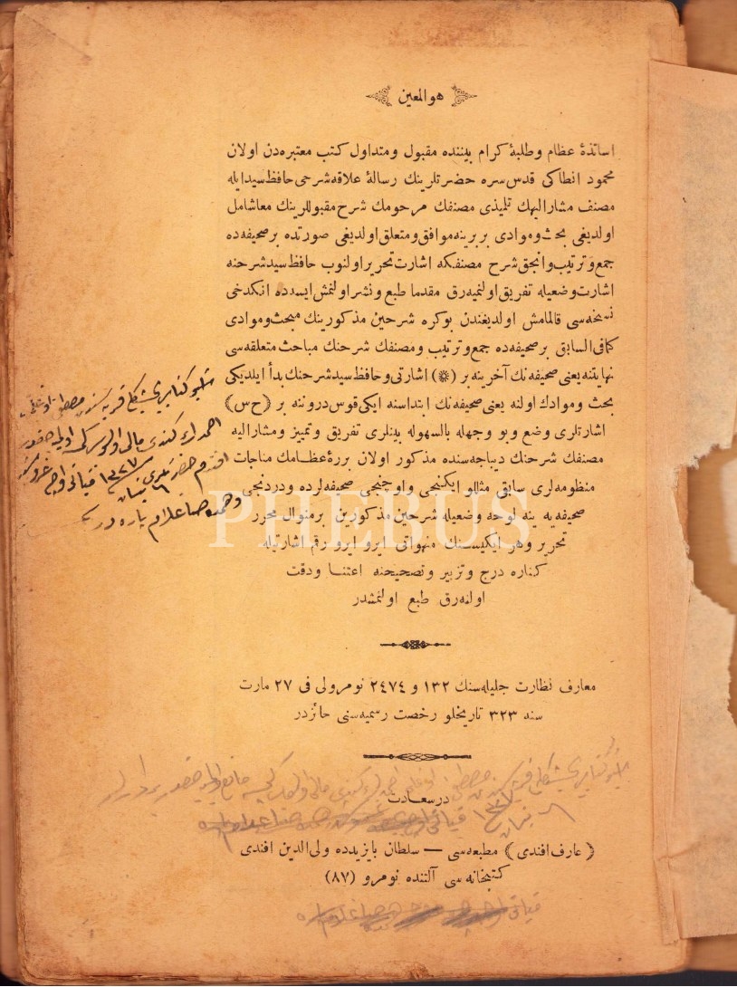 Arapça Şerhu'l-Alâka li-Musannifek, Arif Efendi Matbaası, Dersaadet, 136 syf., 16x24 cm, haliyle