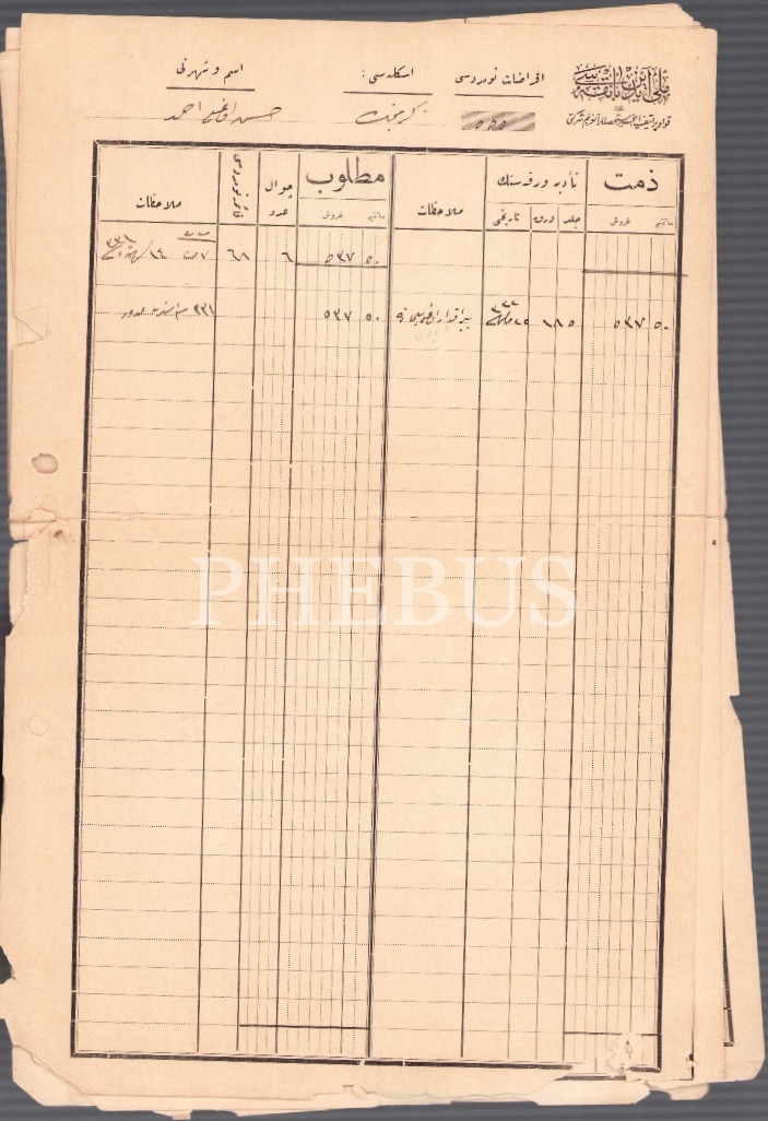 Osmanlıca Millî Aydın Bankası'nın Kooperatif İncir Müstahsıllar Anonim Şirketi antetli 5 adet evrak lotu, 1331,
