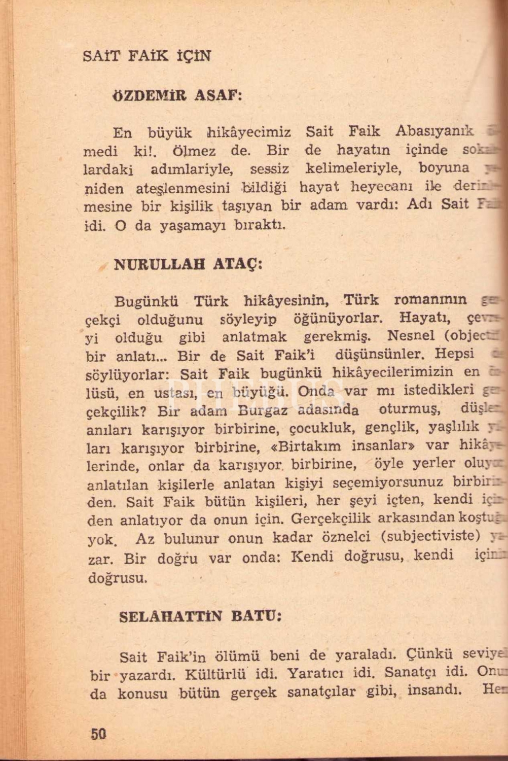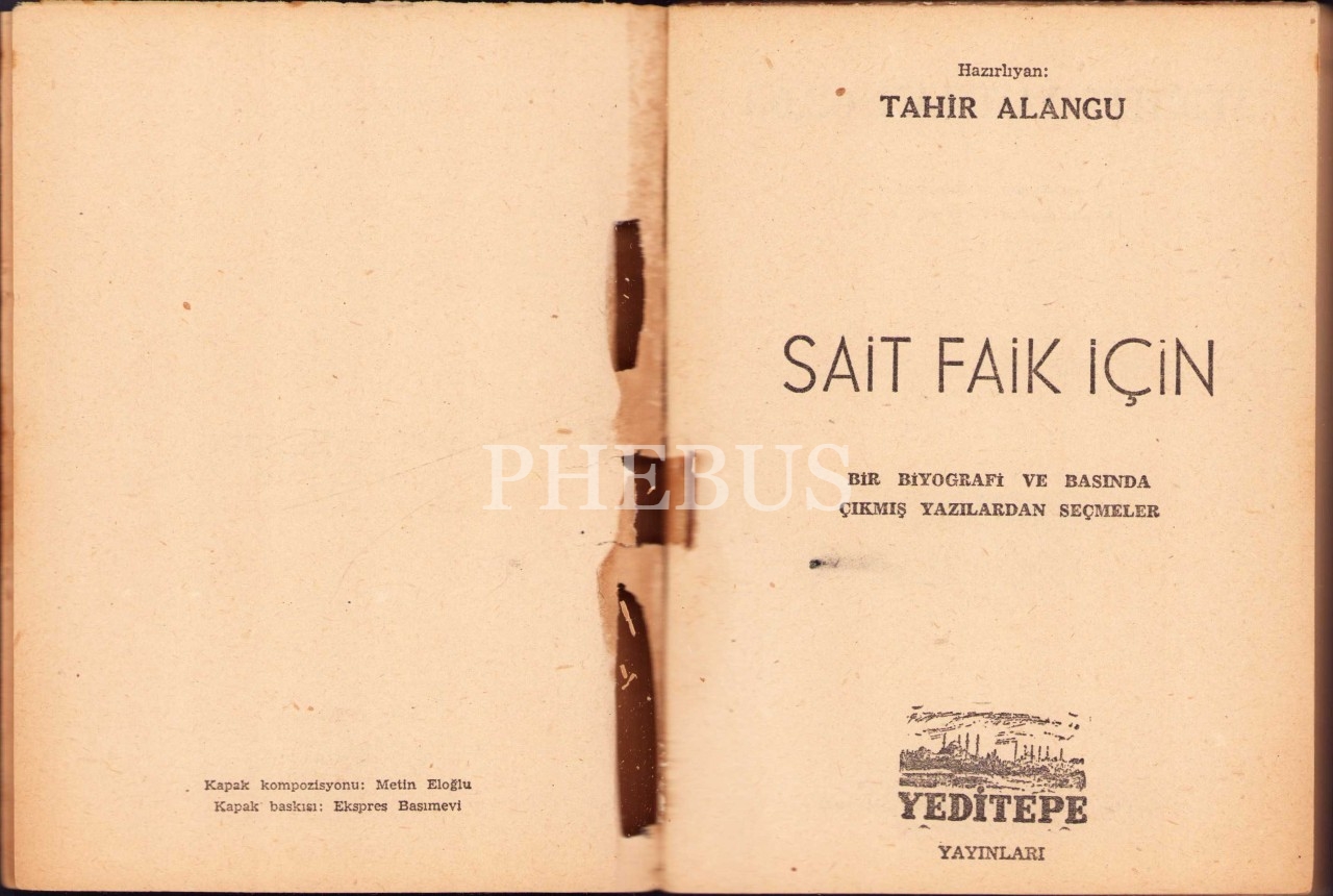 Sait Faik İçin, Tahir Alangu, Yeditepe Yayınları, 1956, 215 sayfa, haliyle