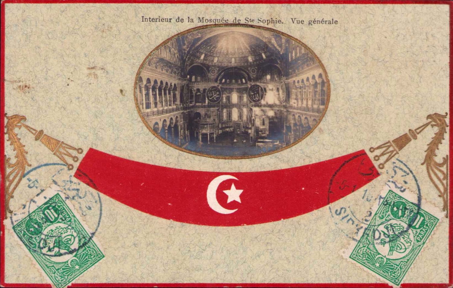 Ayasofya Camii Interior gofre ay yıldız görselli kartpostal, önden pullu postadan geçmiş
