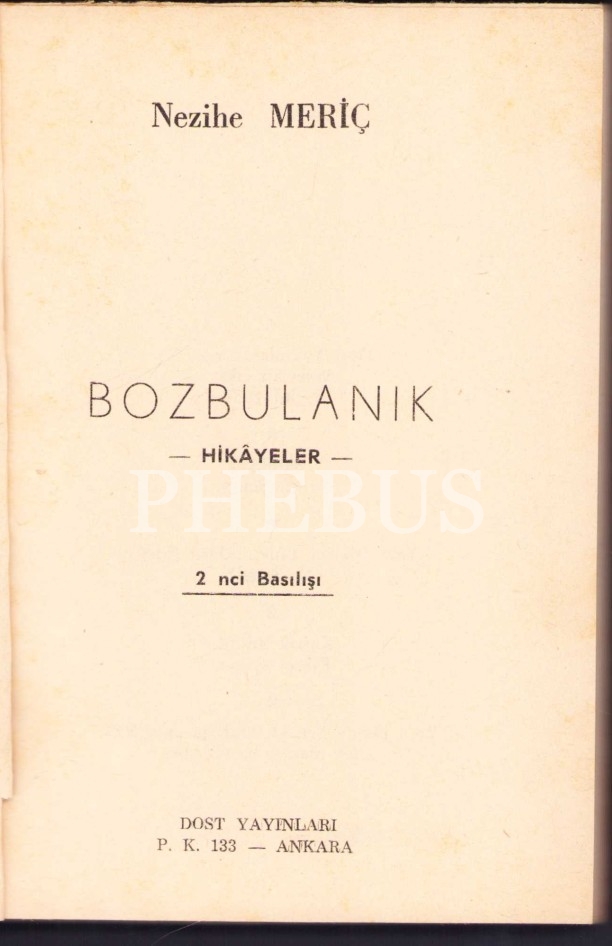 Bozbulanık, Nezihe Meriç, Dost Yayınları, Eylül 1957, 145 sayfa