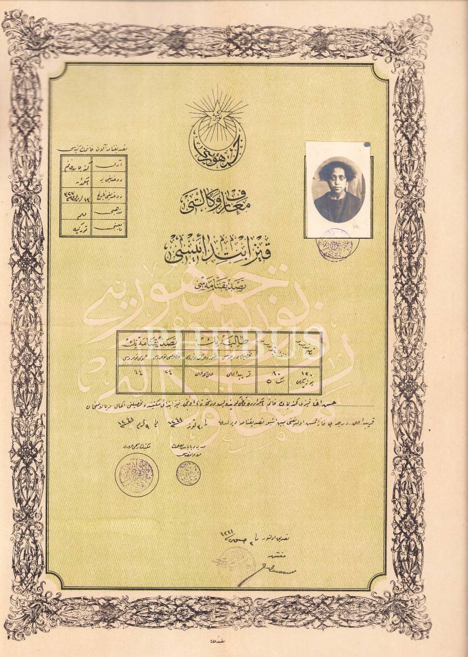 Osmanlıca kız ilkokulu diploması, Üsküdar 1341, 34x50 cm