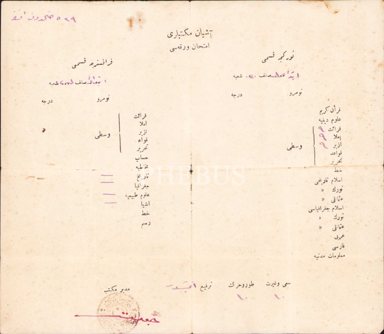Osmanlıca Aşiyan Mektebleri İmtihan Varakası, Kadıköy, 22x19 cm