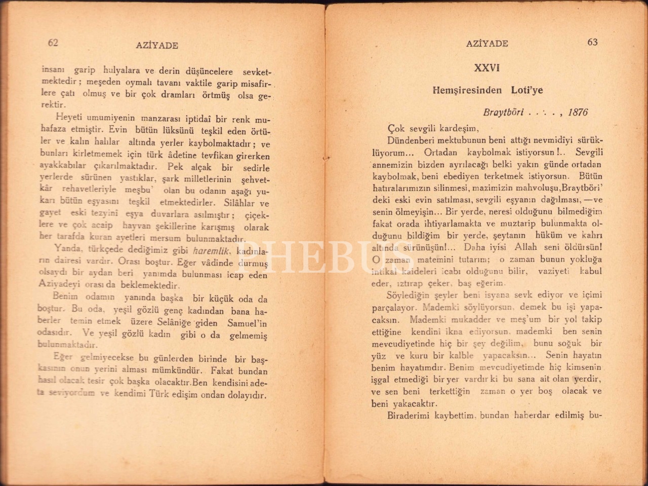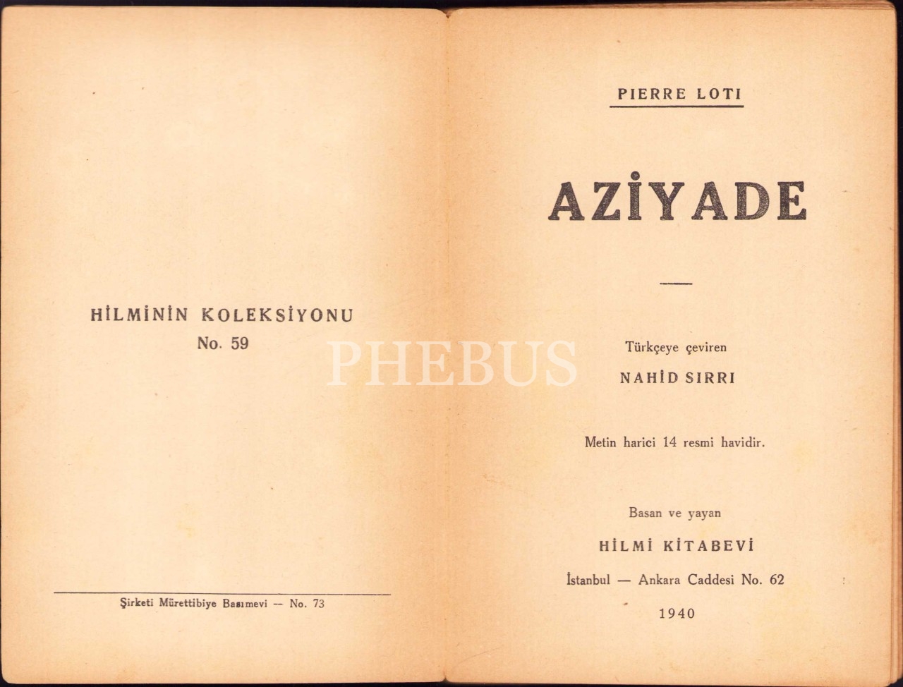 Aziyade, Pierre Loti, Çeviren: Nahid Sırrı, Hilmi Kitabevi - 1940, 225 sayfa, 12x18 cm