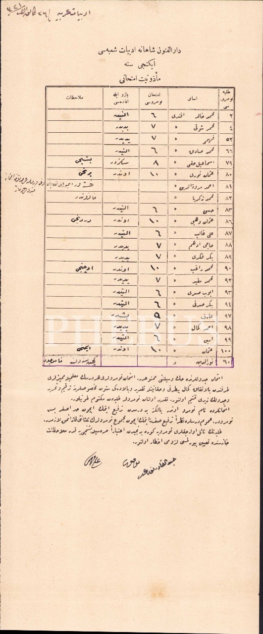 Osmanlıca Darülfünun-ı Şahane Mezuniyet İmtihanı sonuçları, 1321, 17x50 cm