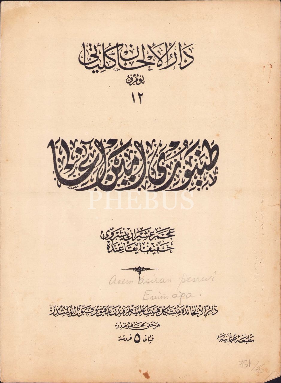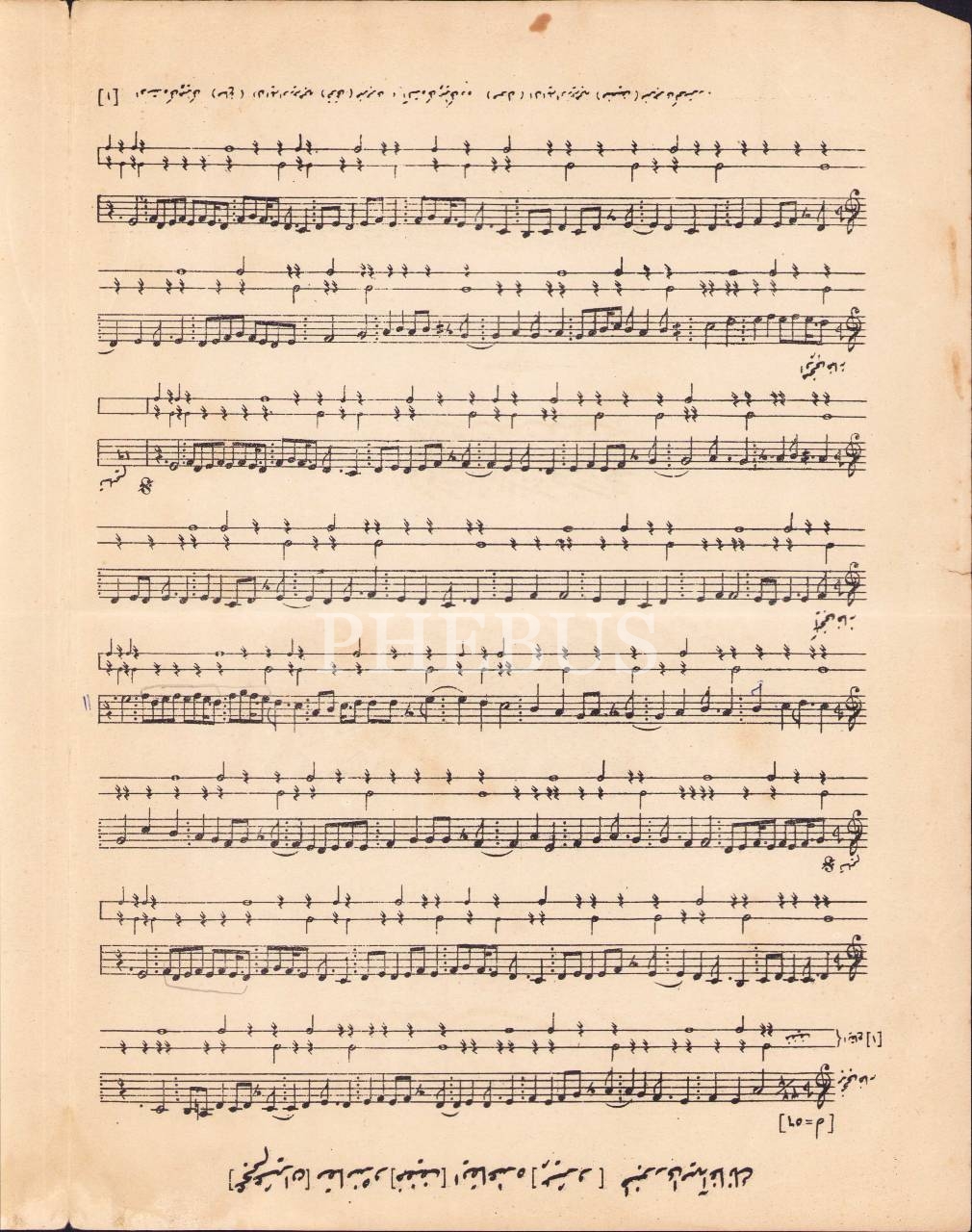 Osmanlıca Darü'l-Elhan Külliyatı No:12 - Tanbûrî Emin Ağa'nın Acem-aşiran peşrev notası, 34x50 cm