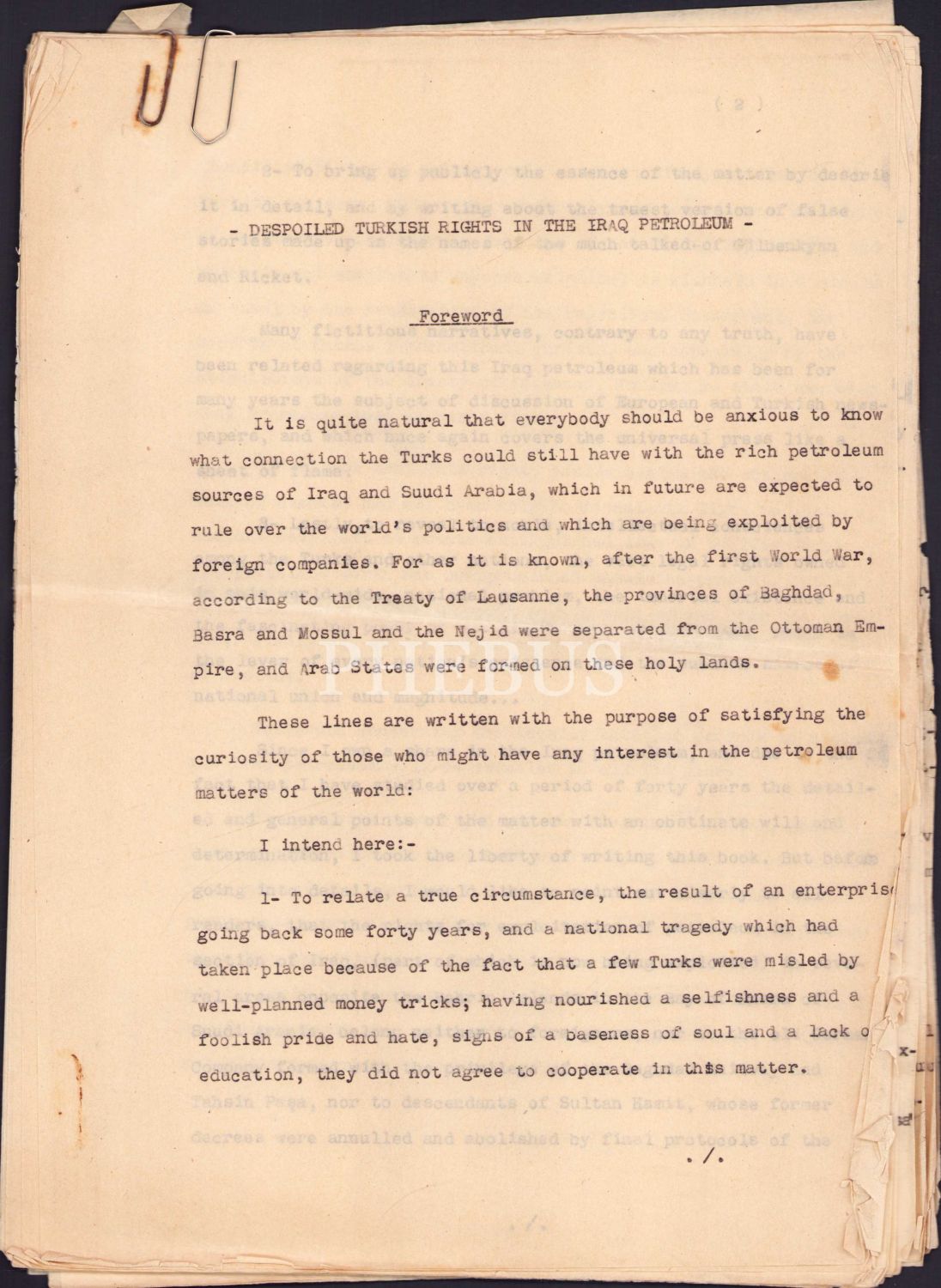 Irak Petrolünde Gasp Edilmiş Türk Hakları başlıklı İngilizce metin, 30 syf., 21x30 cm